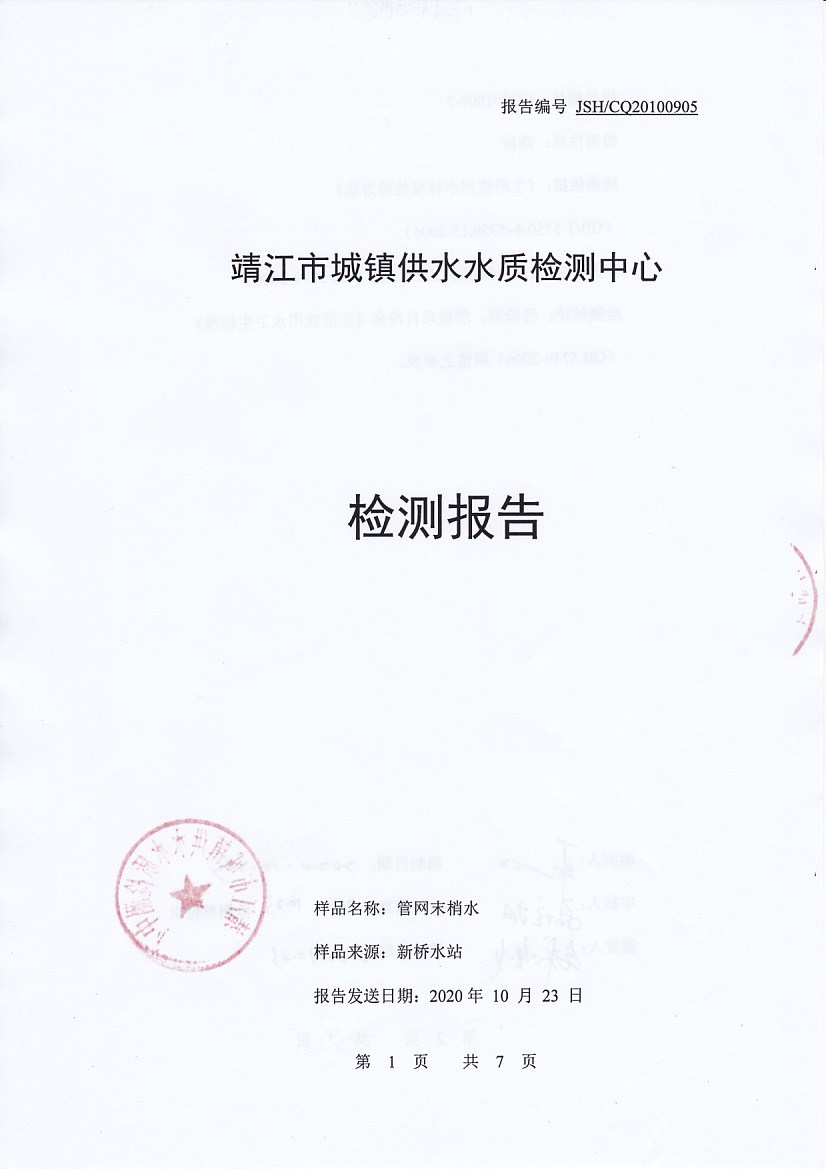 管網(wǎng)末梢水檢測報(bào)告2020.09.01