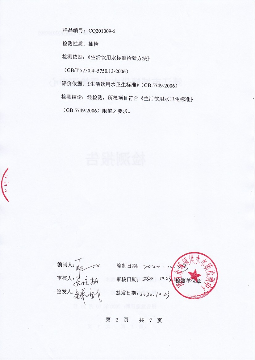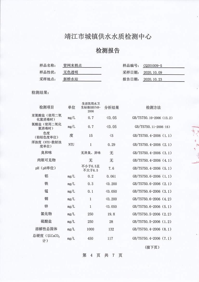 管網(wǎng)末梢水檢測報(bào)告2020.10.09