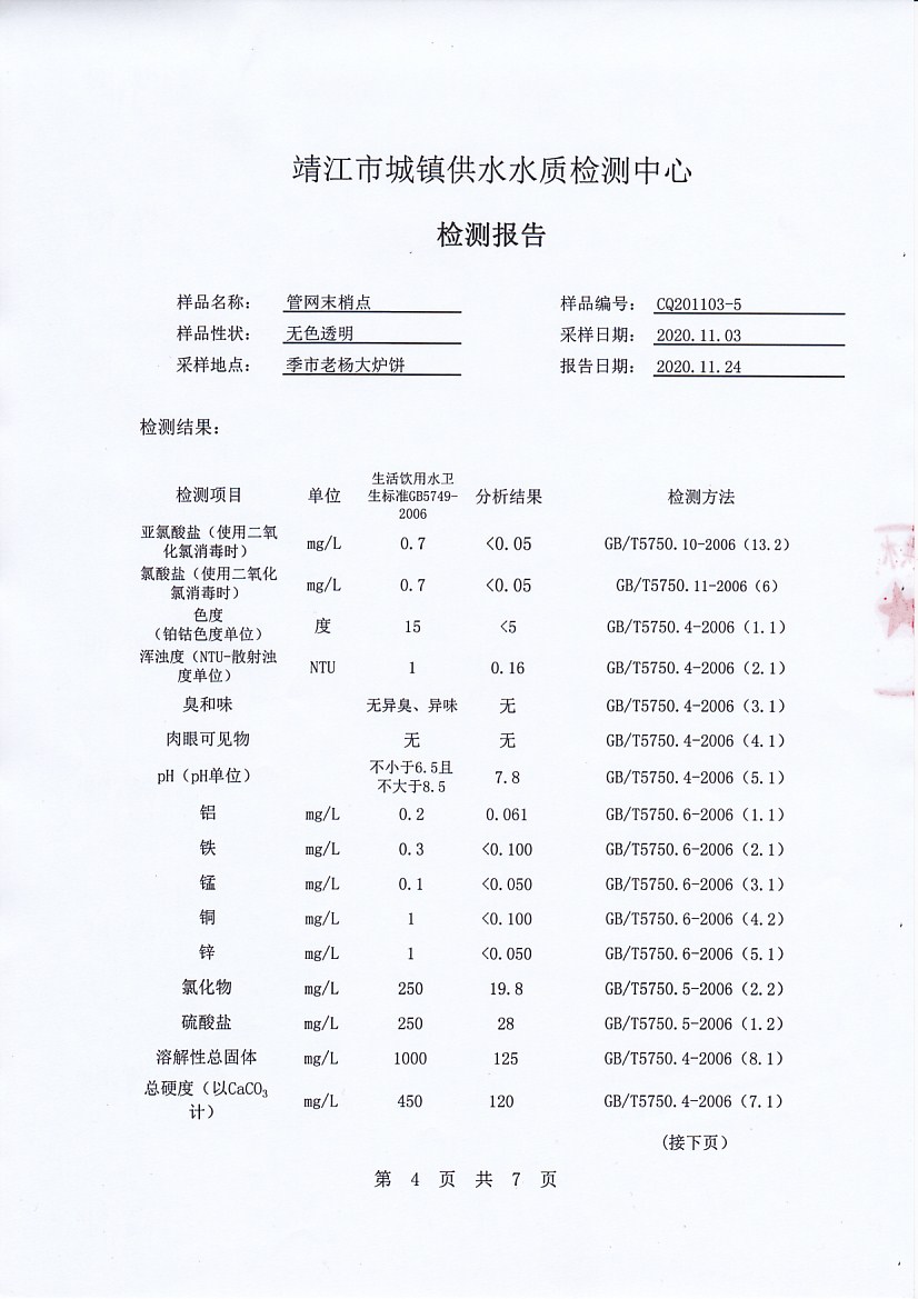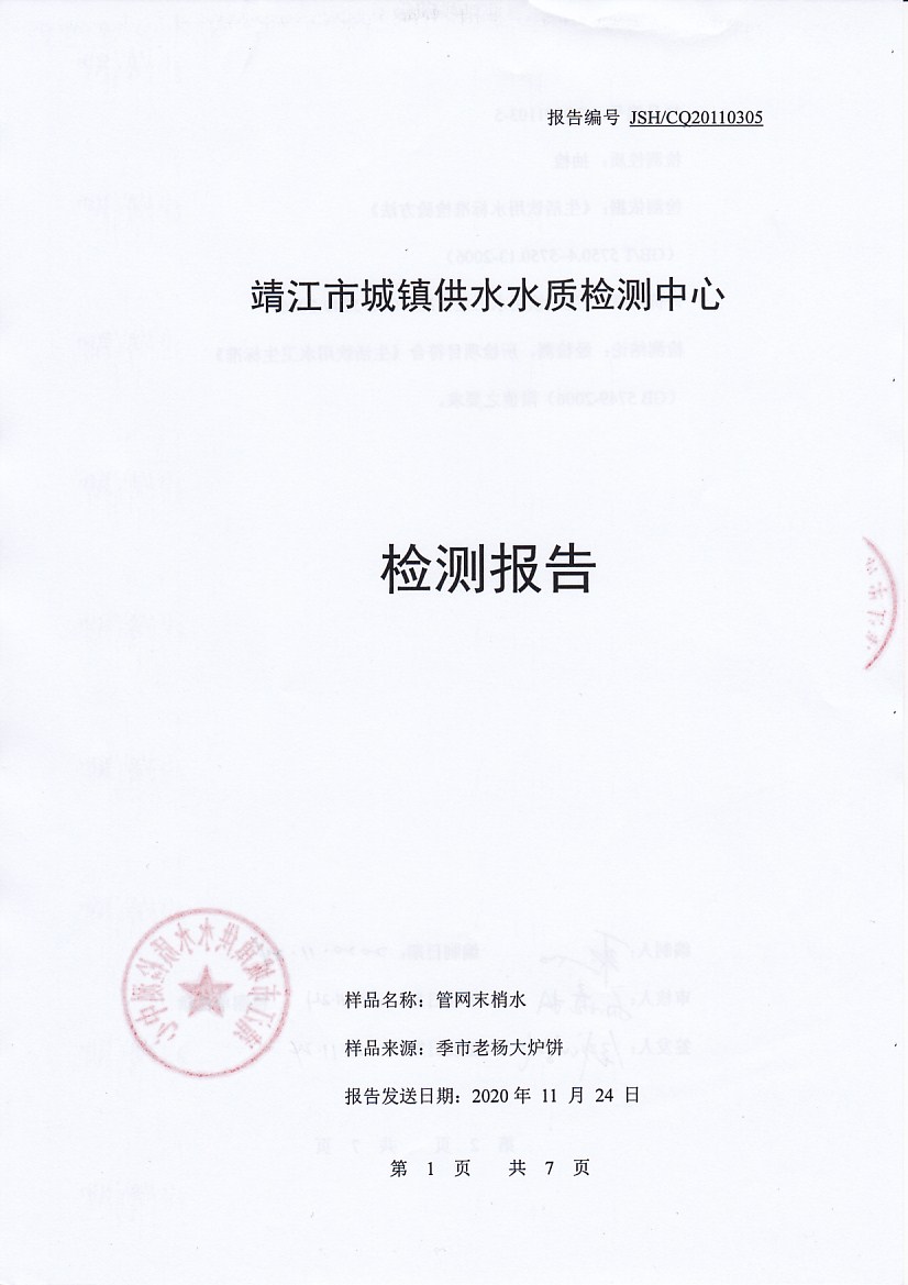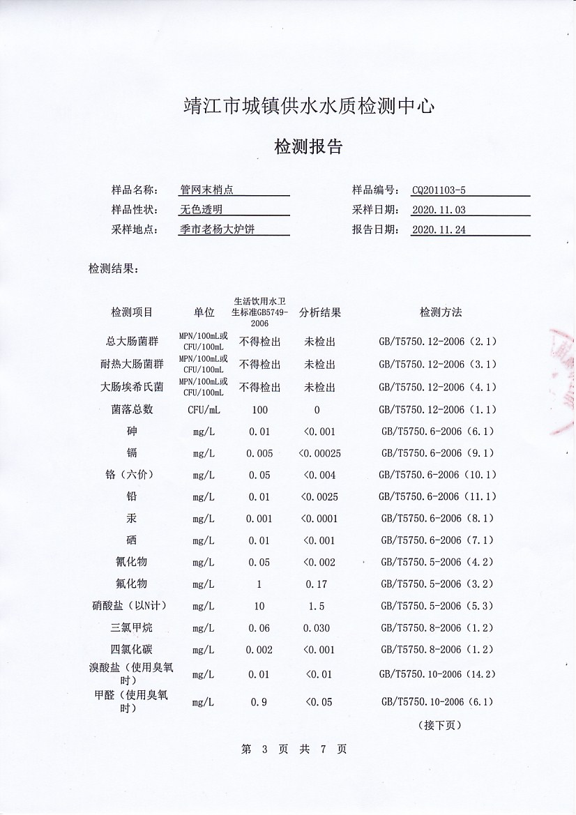 管網(wǎng)末梢水檢測(cè)報(bào)告2020.11.03