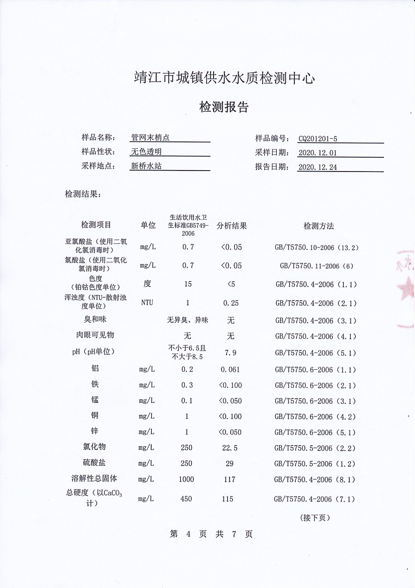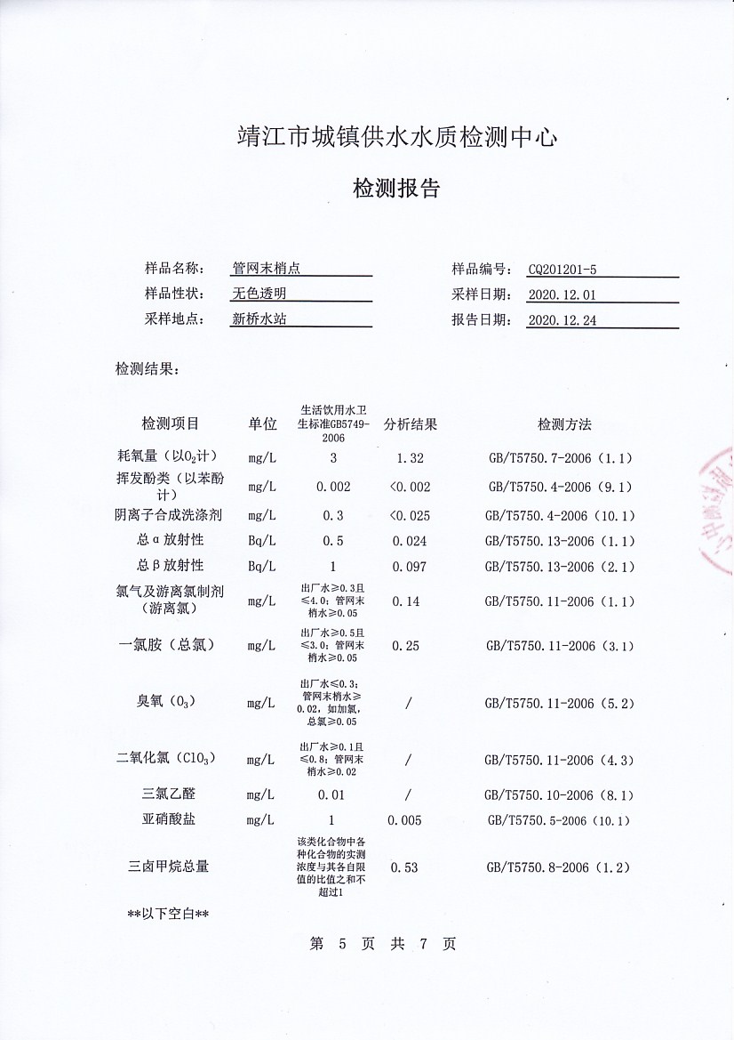 管網(wǎng)末梢水檢測報(bào)告2020.12.01