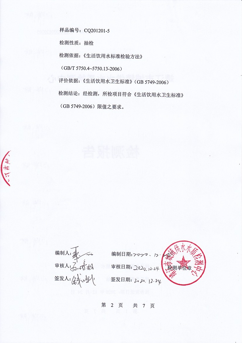 管網(wǎng)末梢水檢測報(bào)告2021.02.02