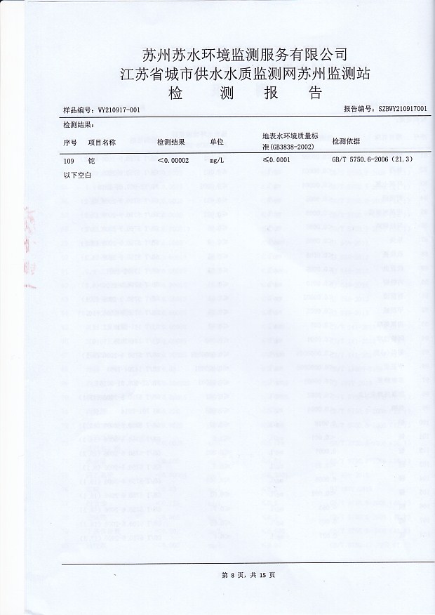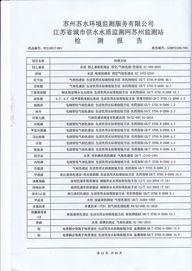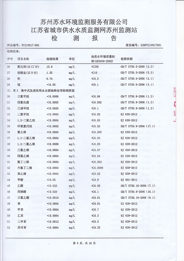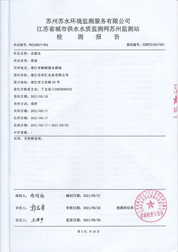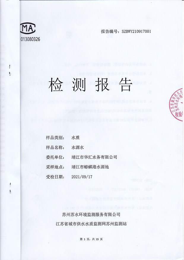 2021年下半年水源水水質(zhì)報(bào)告