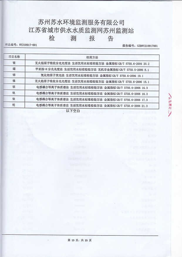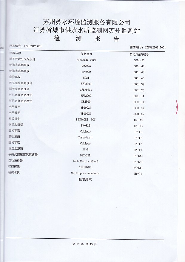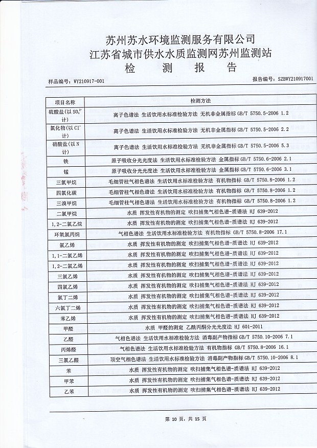 每月管網(wǎng)末梢水全分析