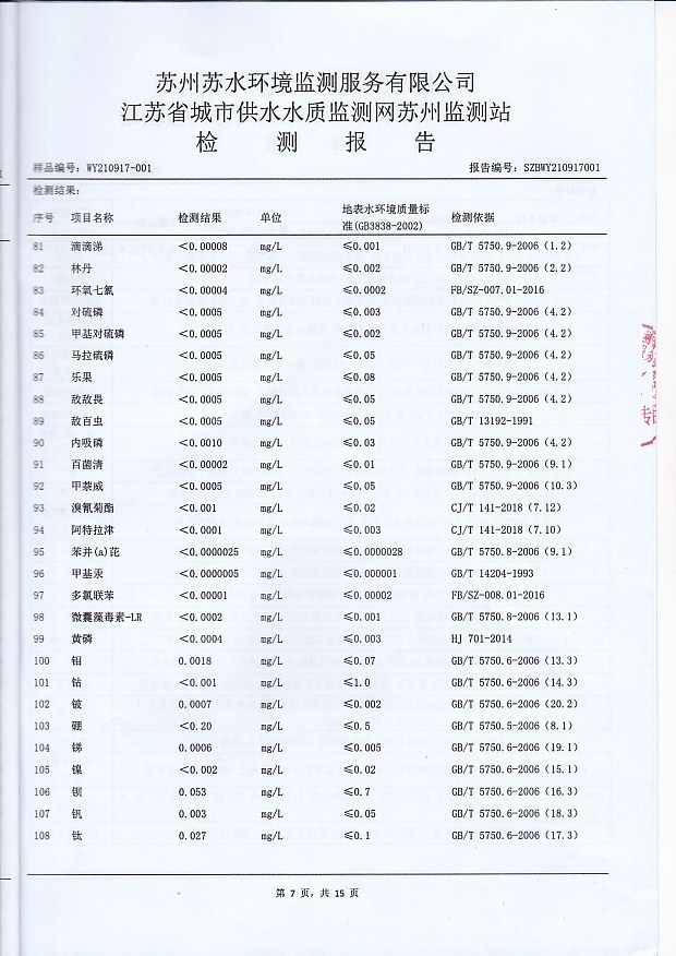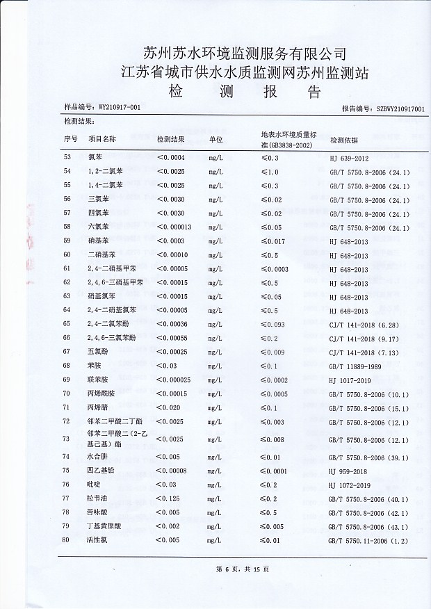 2021年上半年水源水水質(zhì)報(bào)告