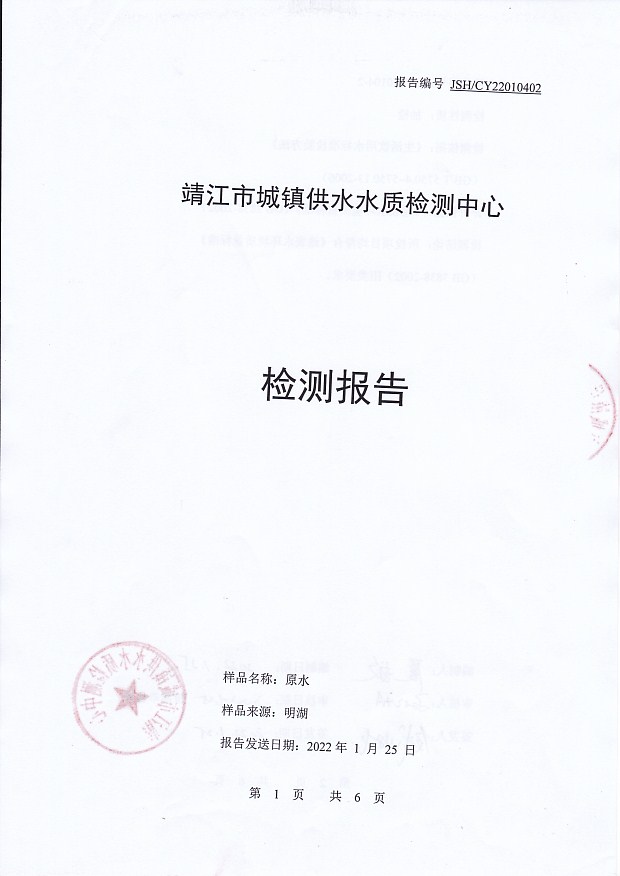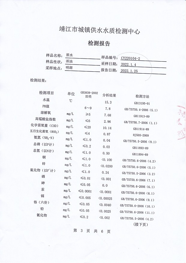 明湖水檢測(cè)報(bào)告2022.1.4