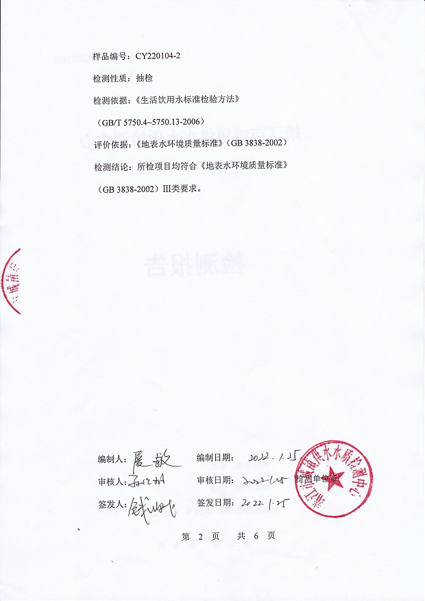明湖水檢測(cè)報(bào)告2022.2.8