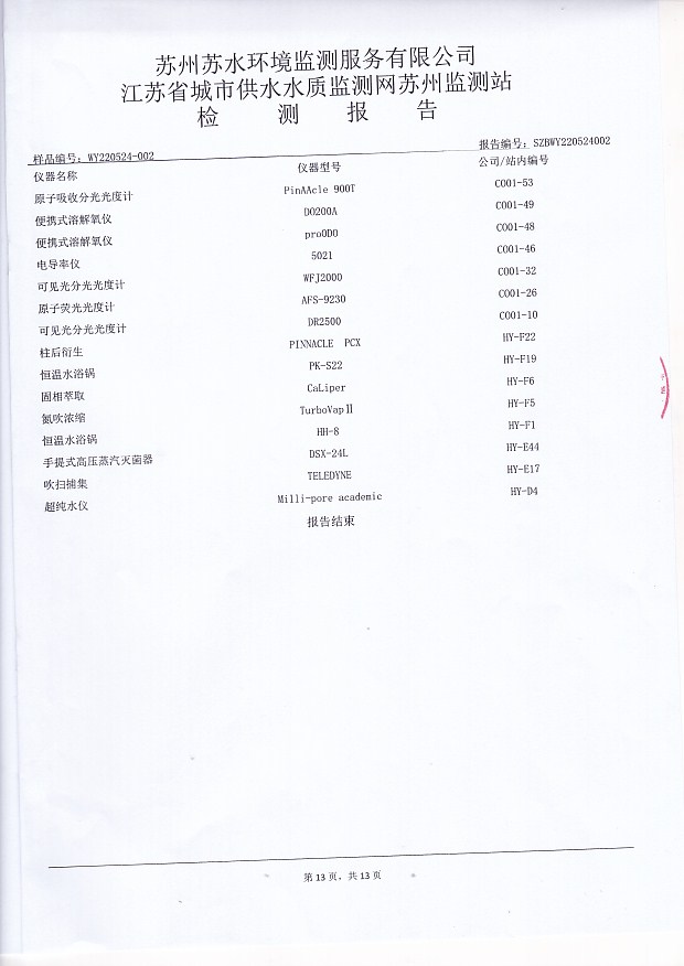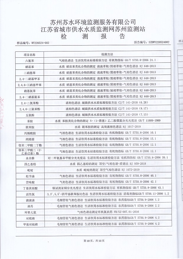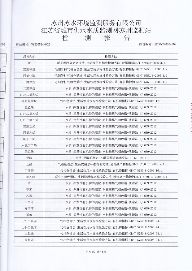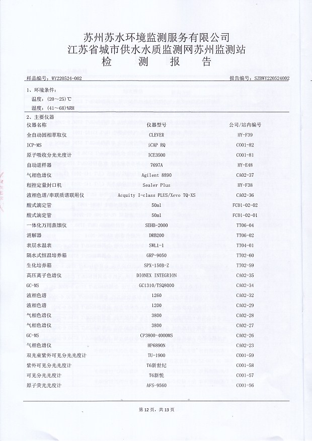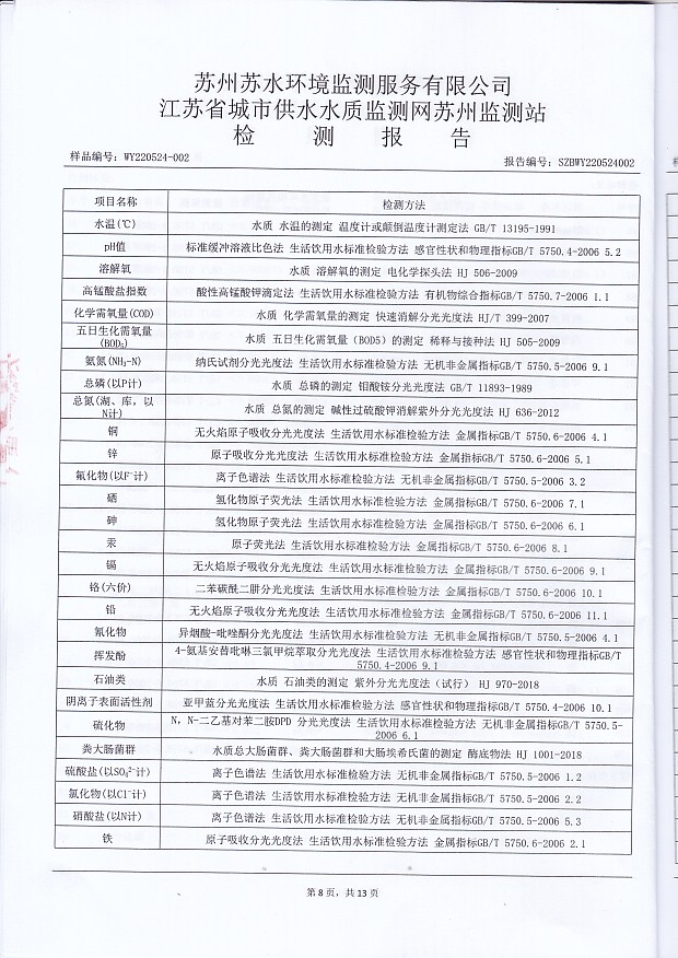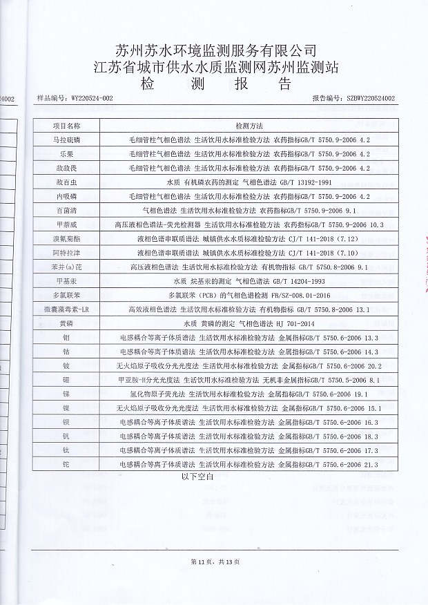 每月管網(wǎng)末梢水全分析