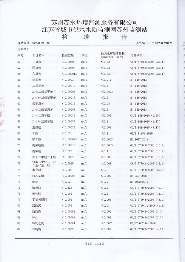 2022年上半年水源水水質(zhì)報告