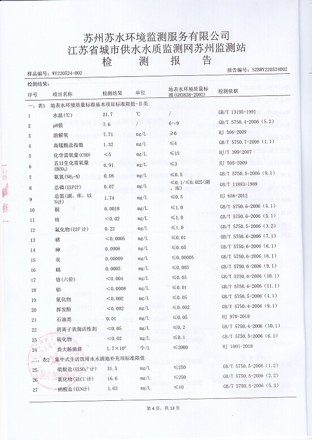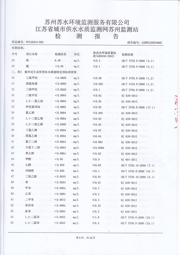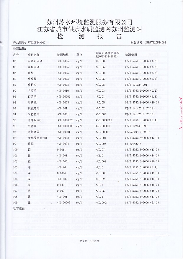 2022年下半年水源水水質(zhì)報告