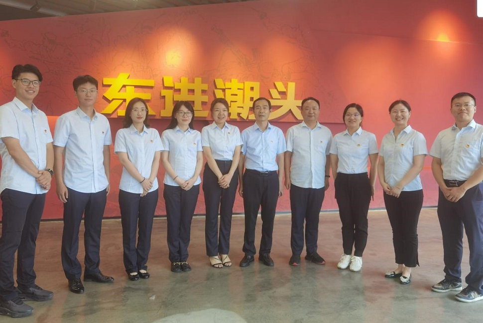 東進村黨總書記張金榮帶領(lǐng)大家參觀紅色紀念館,聆聽紅色東進故事。