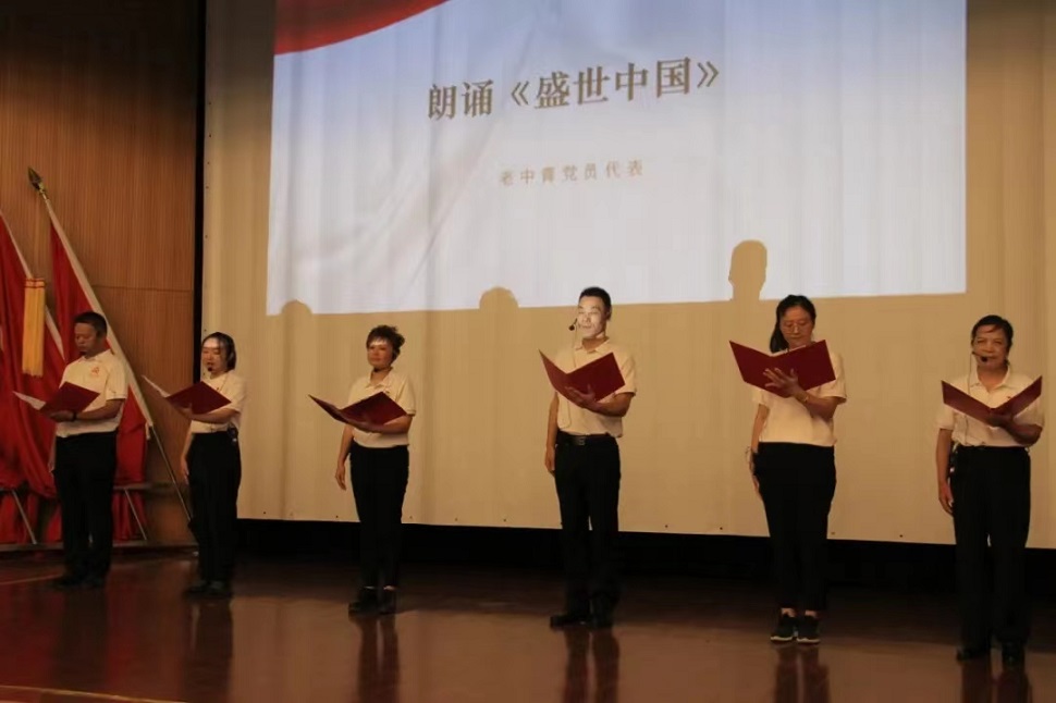 老中青三代黨員代表朗誦《盛世中國》。盛世中國,帶領(lǐng)大家重溫崢嶸歲月,讓我們在紅色經(jīng)典的感召下,學黨史,感黨恩,團結(jié)一心跟黨走,為中華民族的偉大復興,為中國的跨越式發(fā)展,譜寫新篇章。