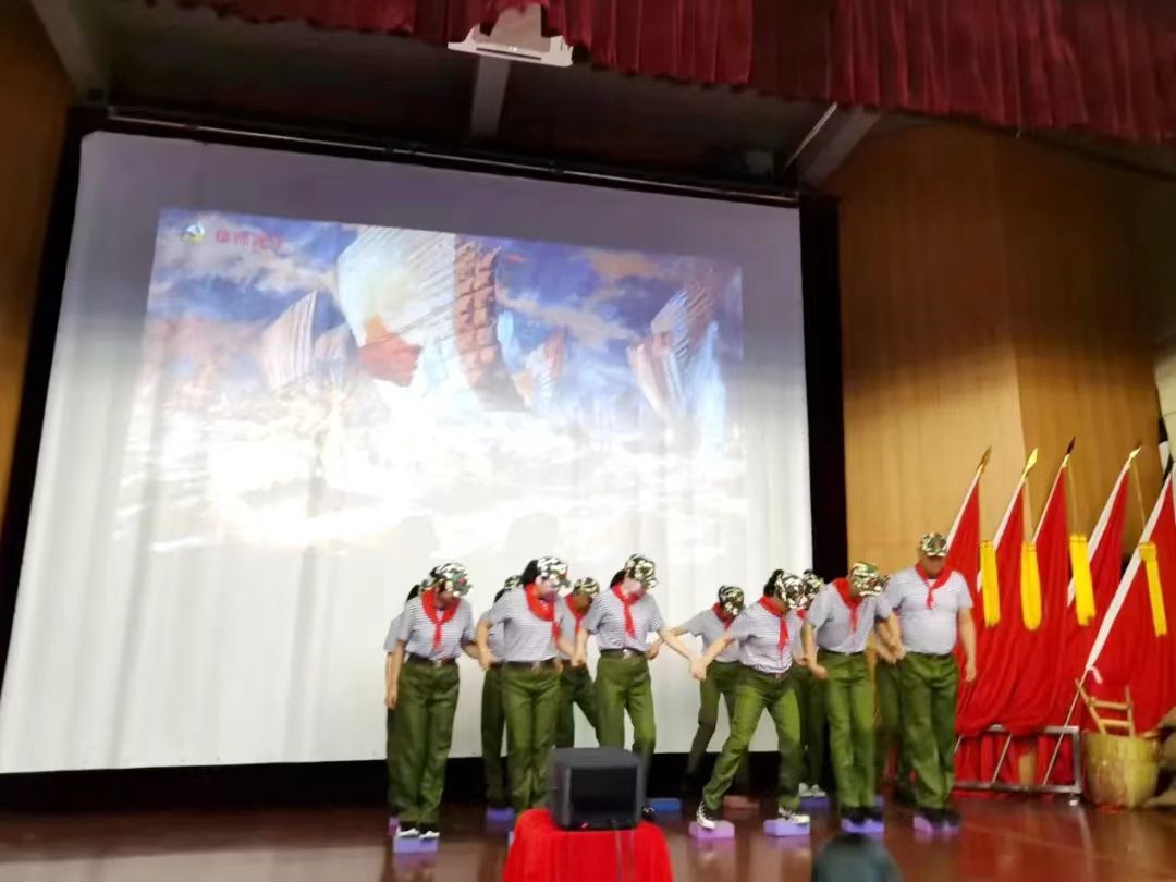 各個單位黨員代表表演《紅色運動展風采》;顒右浴岸山瓚(zhàn)役”為主線,有“糧倉靖江”、“支援前線”、“雄師渡江”三個現(xiàn)場情景環(huán)節(jié)。大家身著軍服,感受中國解放軍的軍紀、軍魂,追憶歷史歲月,致敬中國人民解放軍。