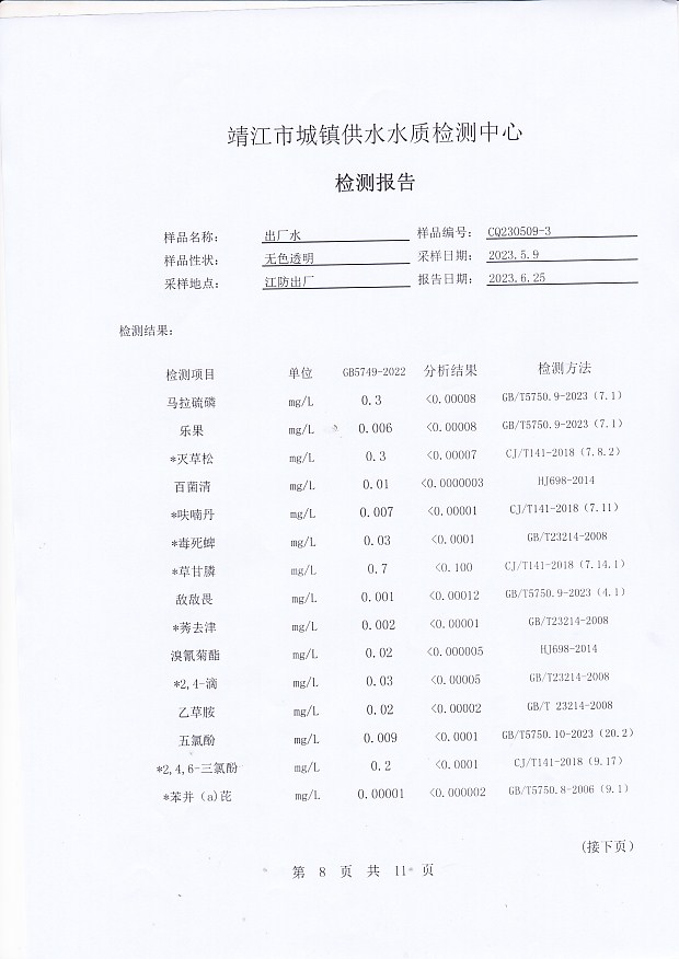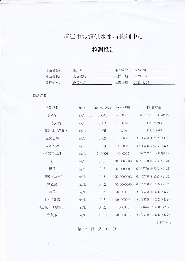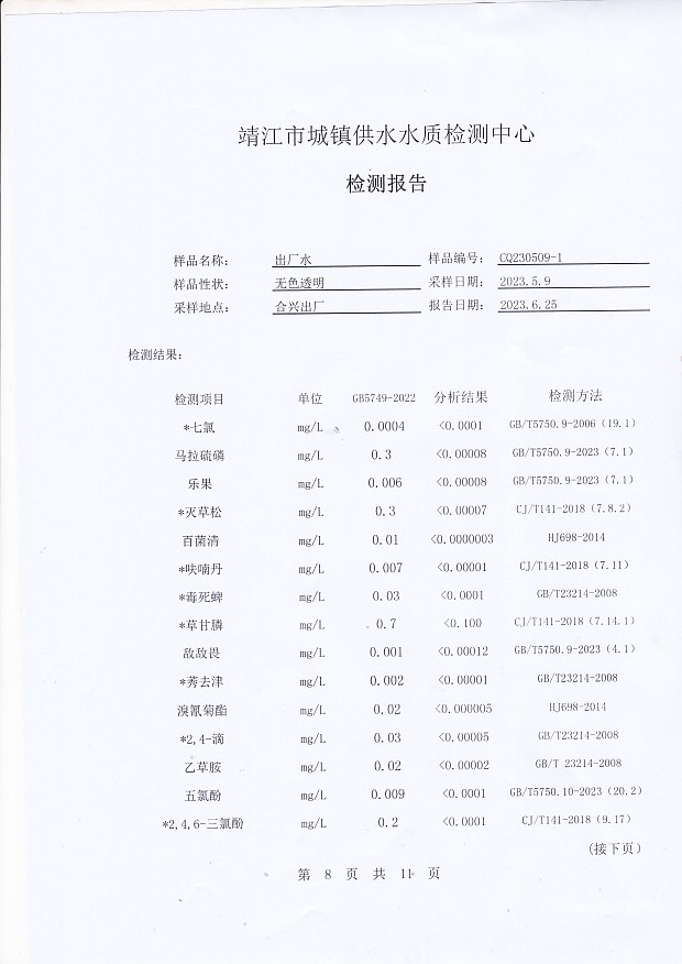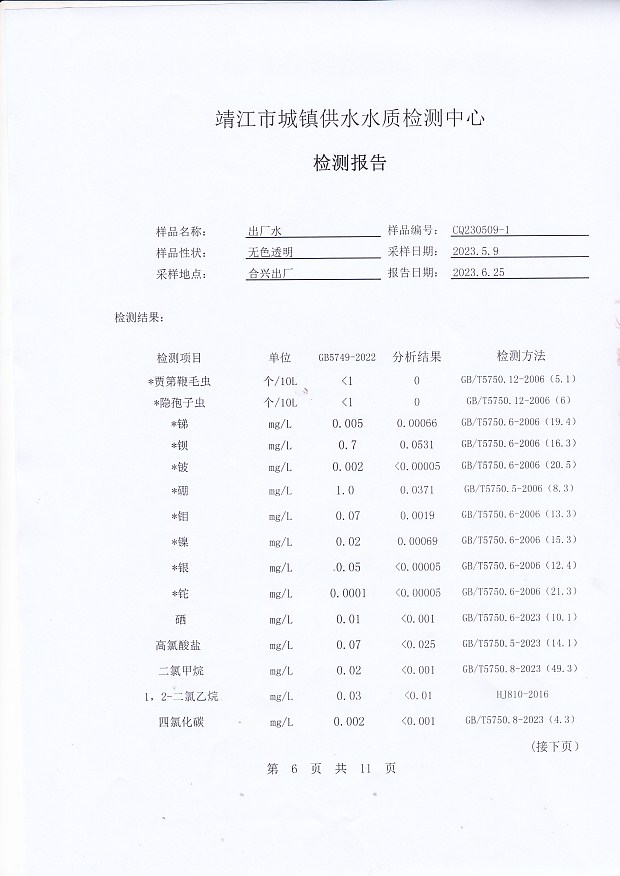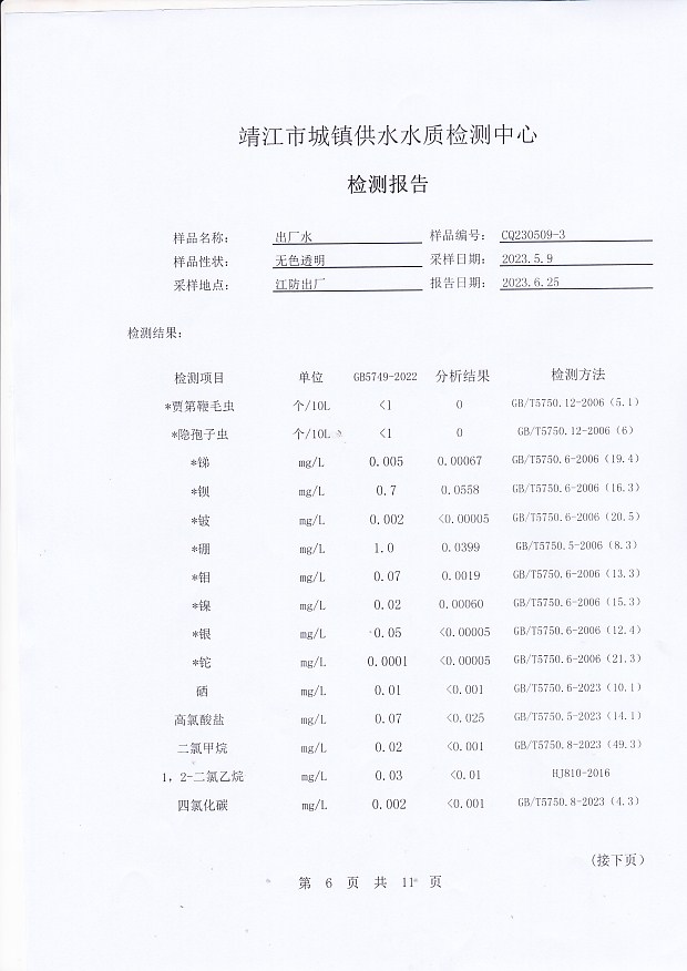 2023年上半年非常規(guī)水質(zhì)檢測報告