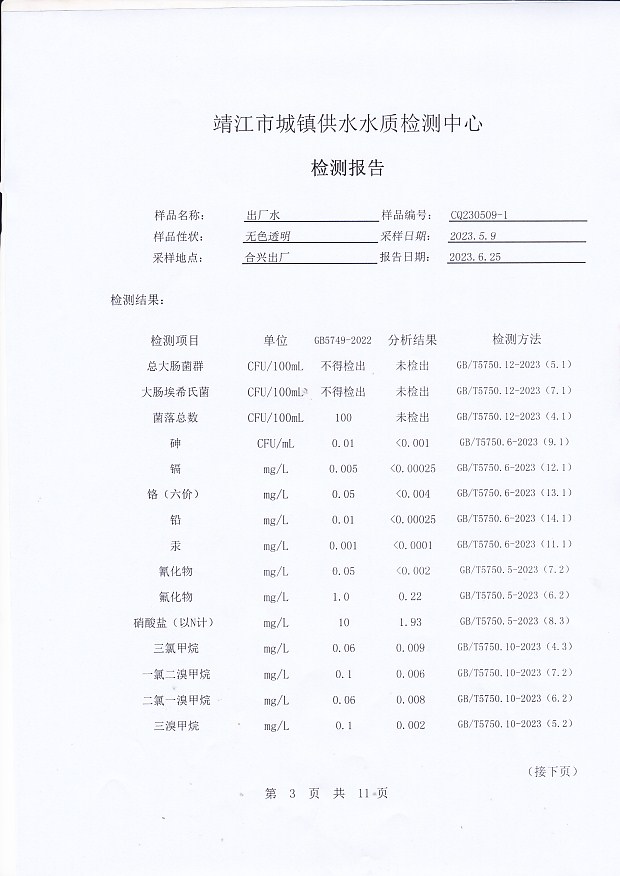 2023年下半年非常規(guī)水質(zhì)檢測報告