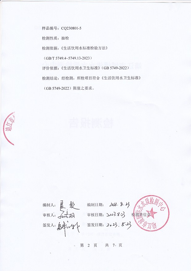 管網(wǎng)末梢水檢測報告2023.9.5