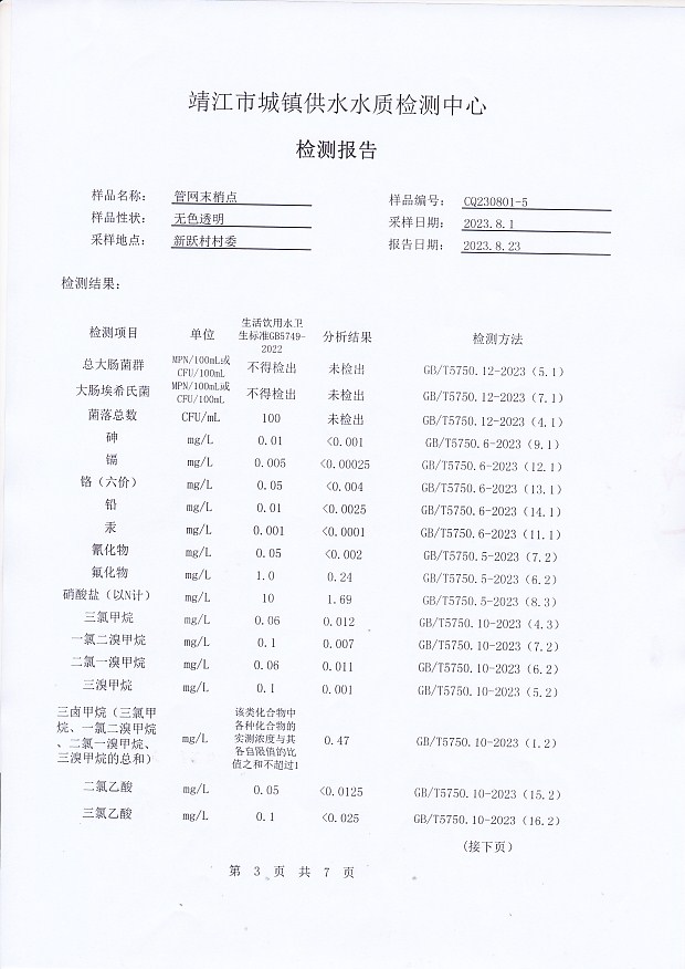 管網(wǎng)末梢水檢測報告2023.8.1