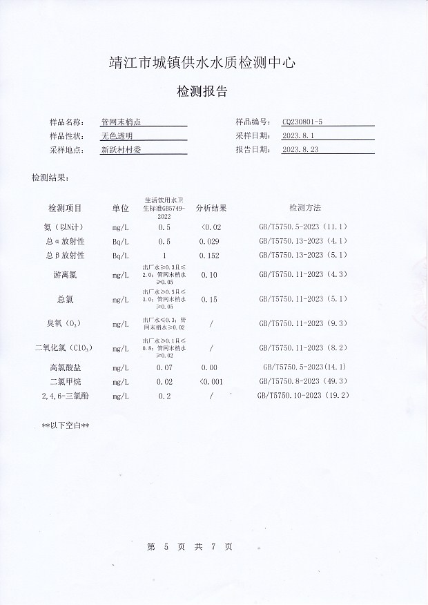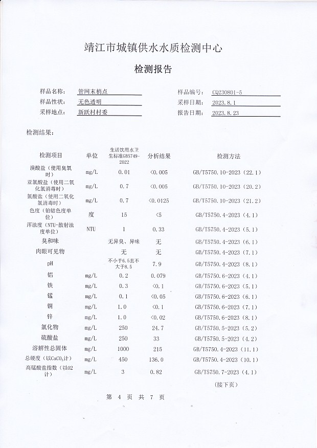 管網(wǎng)末梢水檢測報告2023.7.4