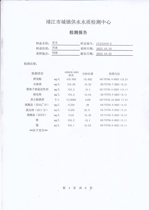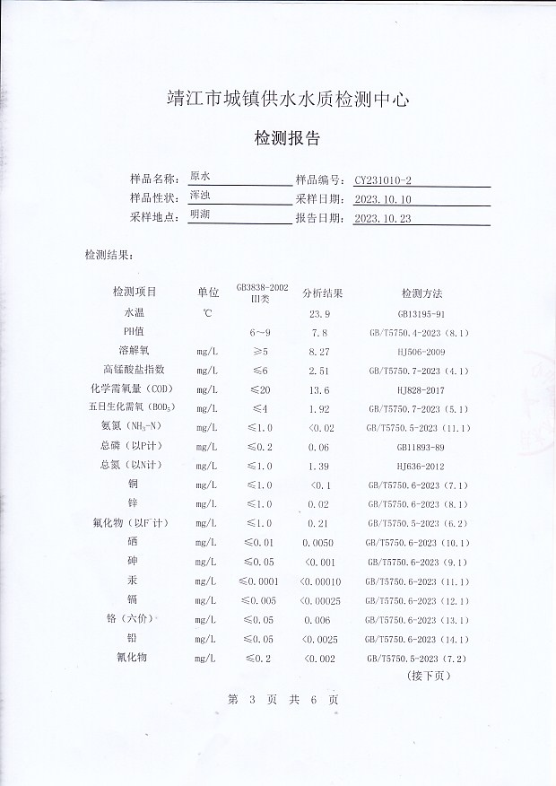 明湖水檢測(cè)報(bào)告2023.10.10
