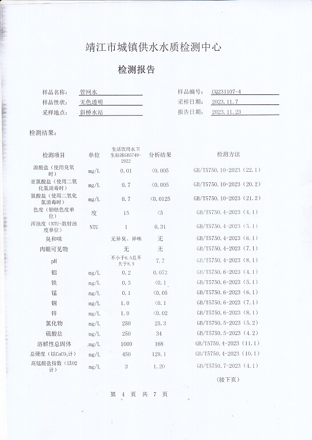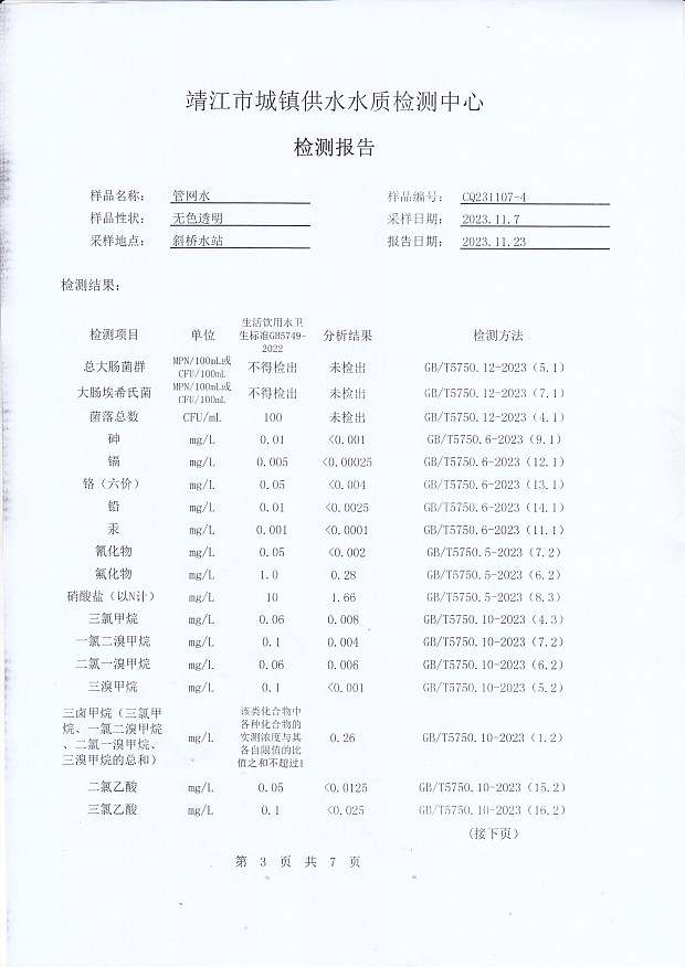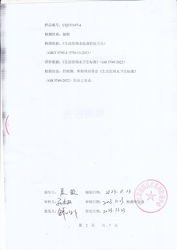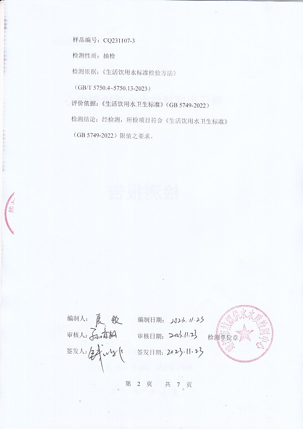 信息來源:華匯水務 ‖ 發(fā)稿作者:水質檢驗部 ‖ 發(fā)布時間:2023年11月23日 ‖ 查看3223次 ‖