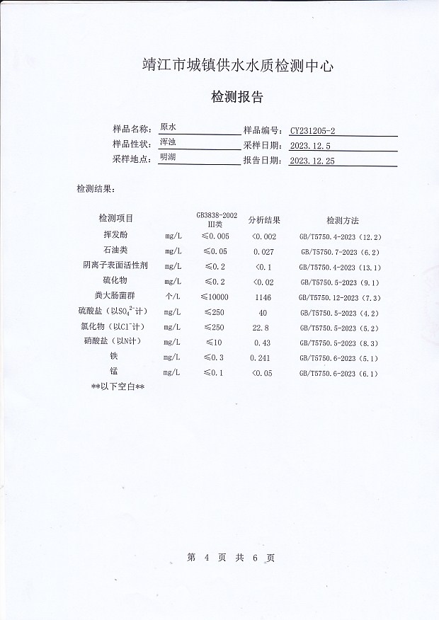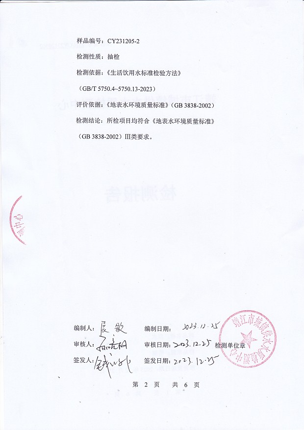 信息來源:華匯水務 ‖ 發(fā)稿作者:水質檢驗部 ‖ 發(fā)布時間:2023年12月25日 ‖ 查看2992次 ‖