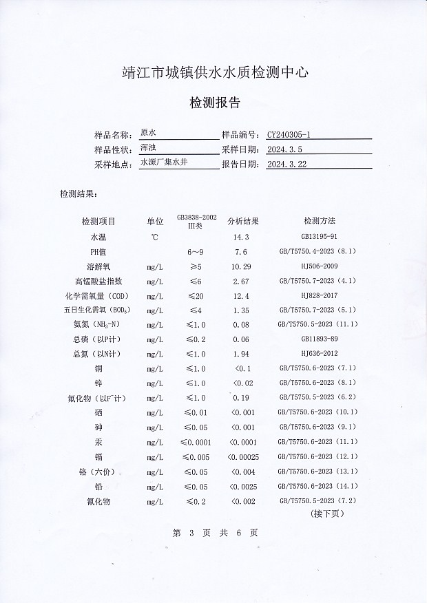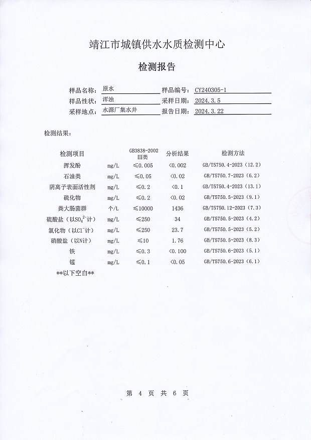 源水檢測報告2024.3.5