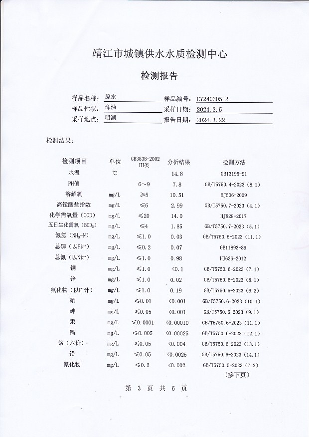 信息來源:華匯水務 ‖ 發(fā)稿作者:水質檢驗部 ‖ 發(fā)布時間:2024年3月22日 ‖ 查看2764次 ‖
