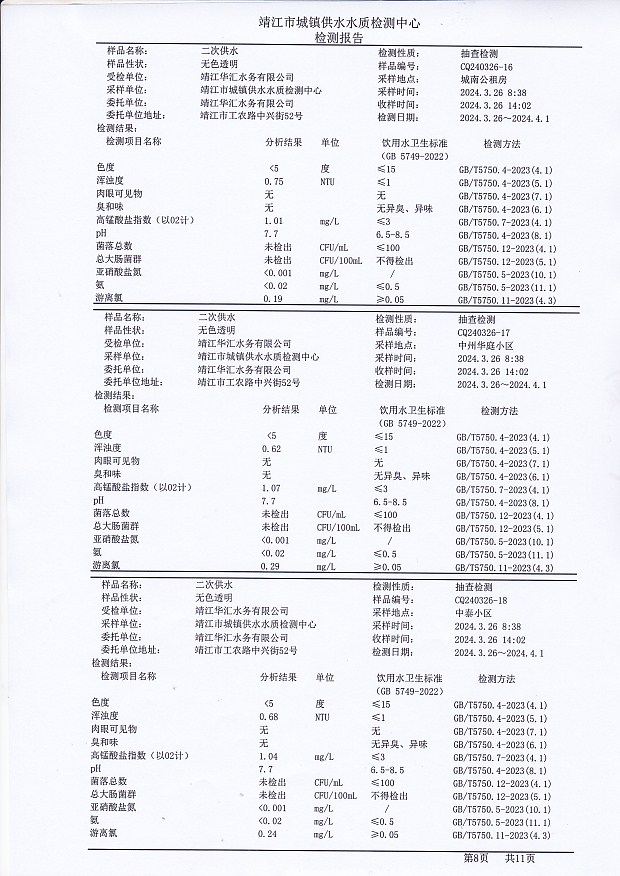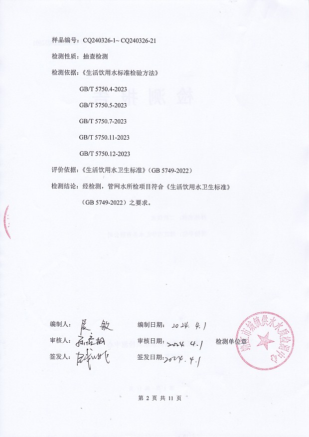 信息來源:華匯水務 ‖ 發(fā)稿作者:水質(zhì)檢驗部 ‖ 發(fā)布時間:2024年4月1日 ‖ 查看2844次 ‖