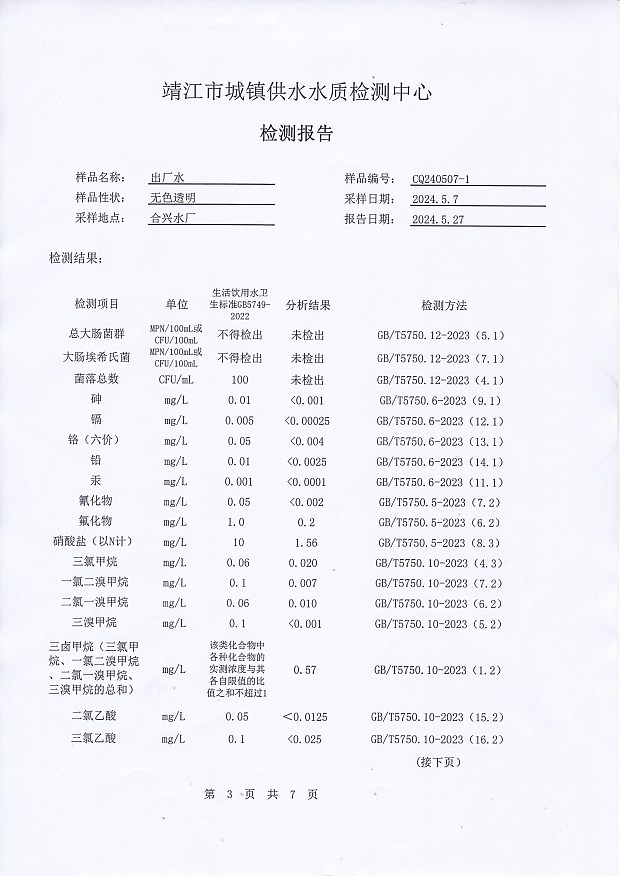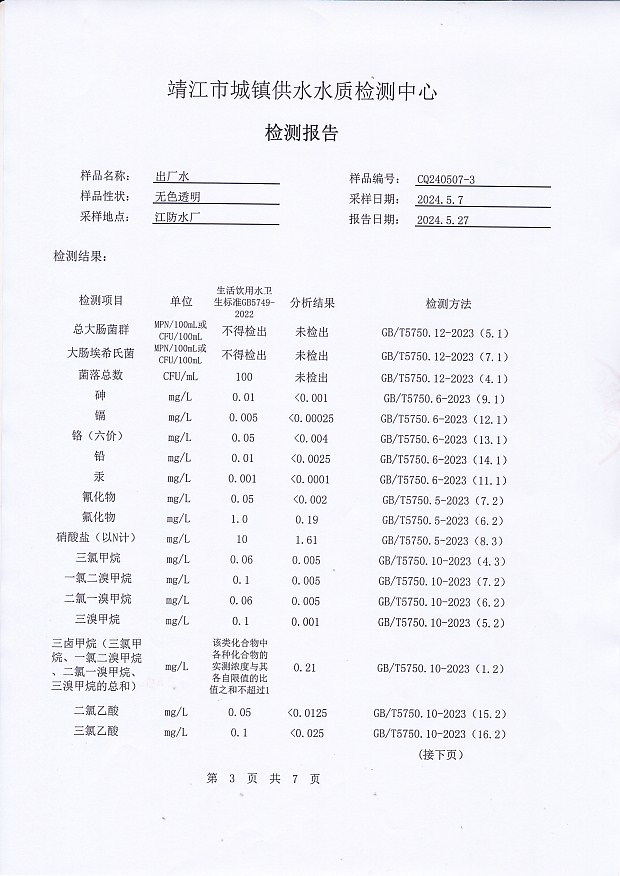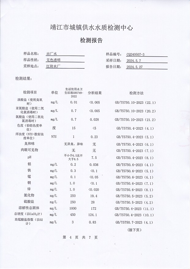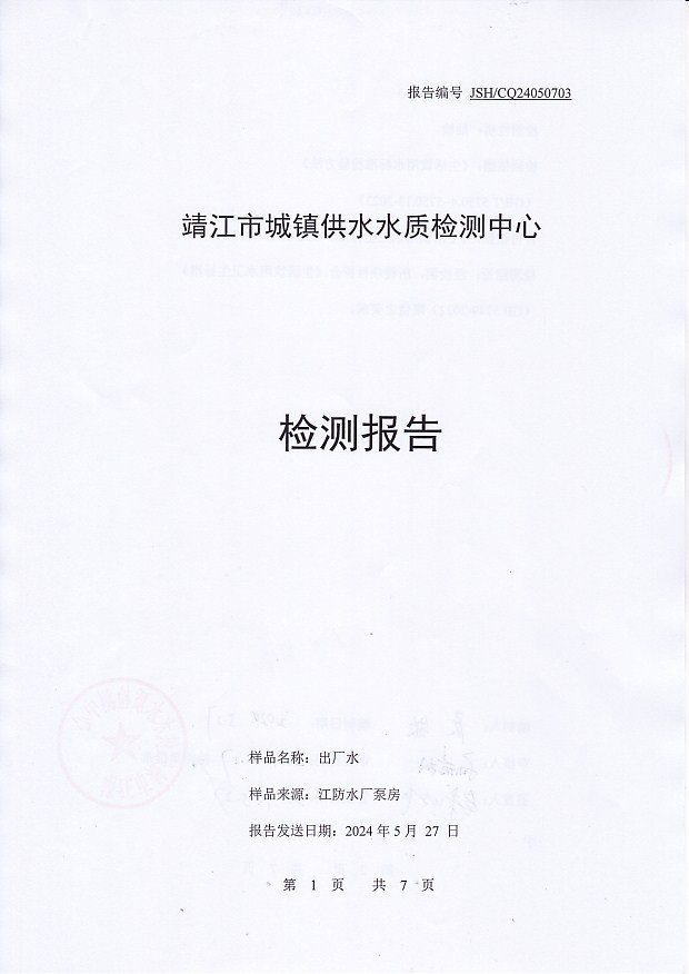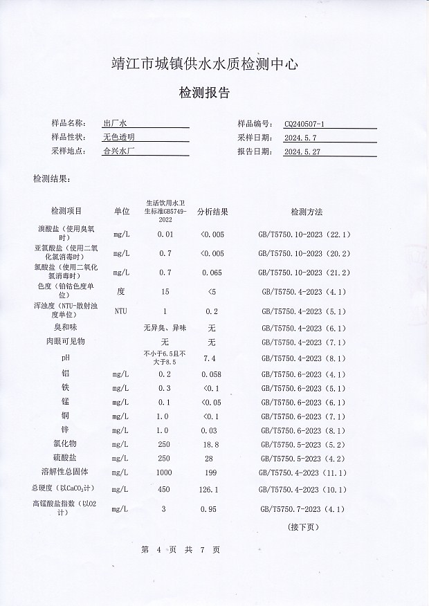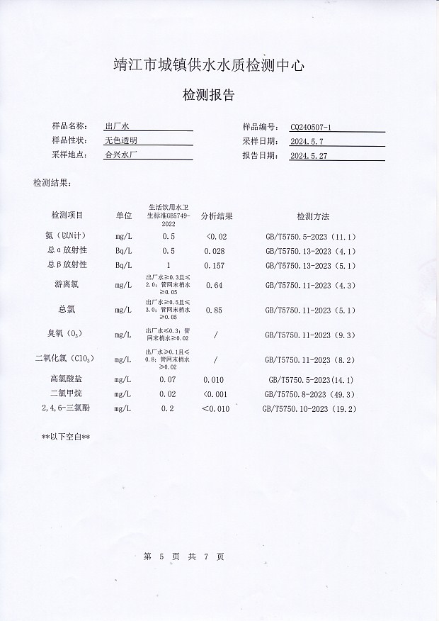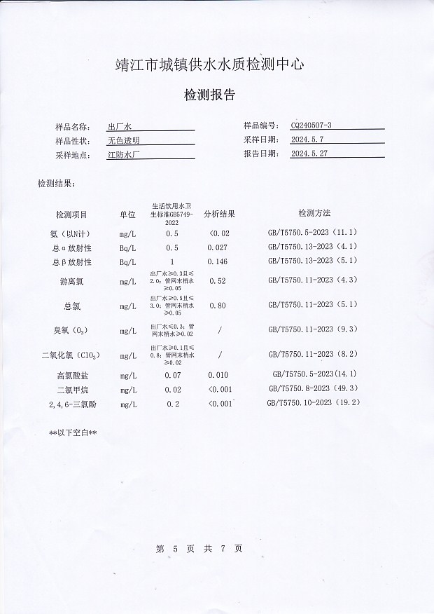 出廠水檢測報告2024.5.7