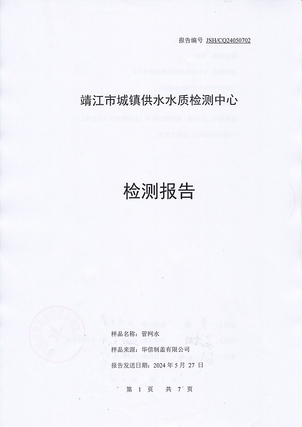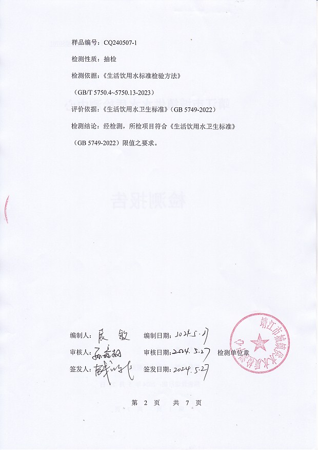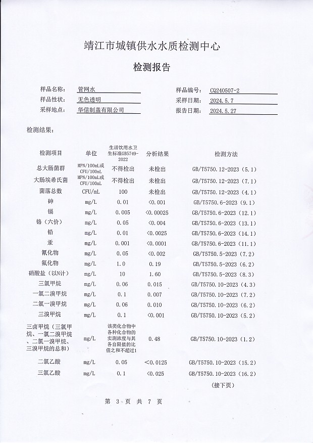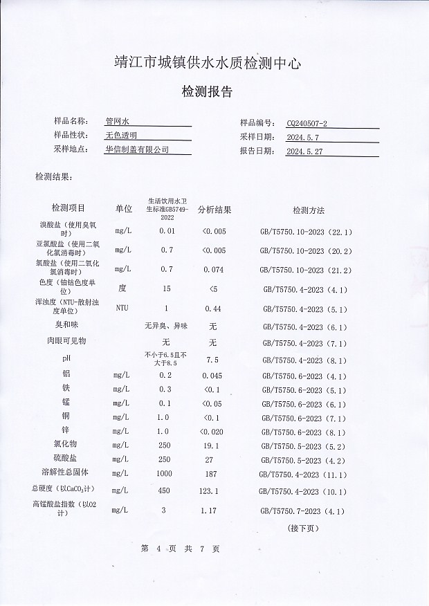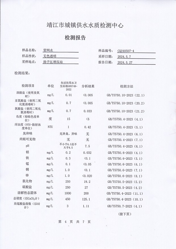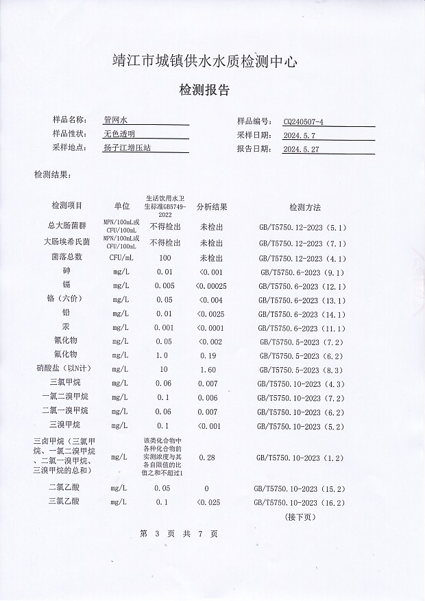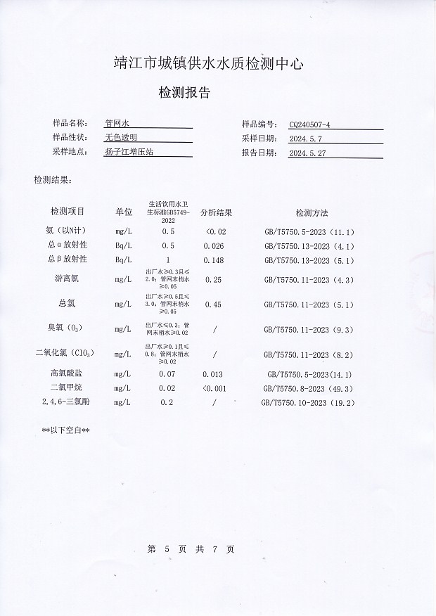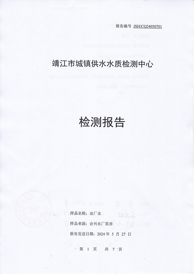 出廠水檢測報告2024.5.7