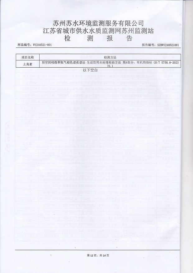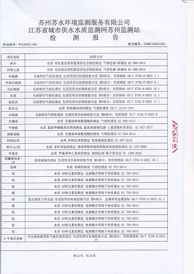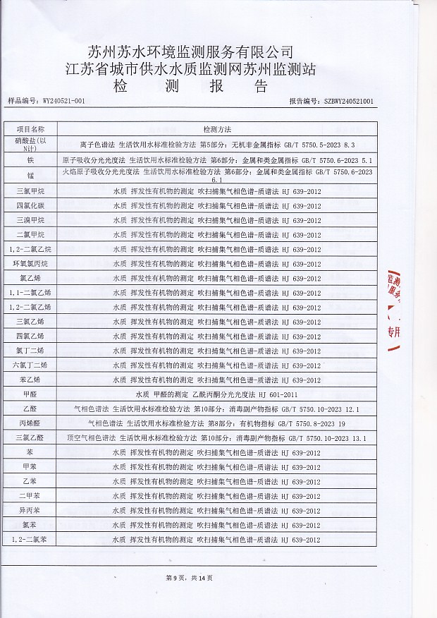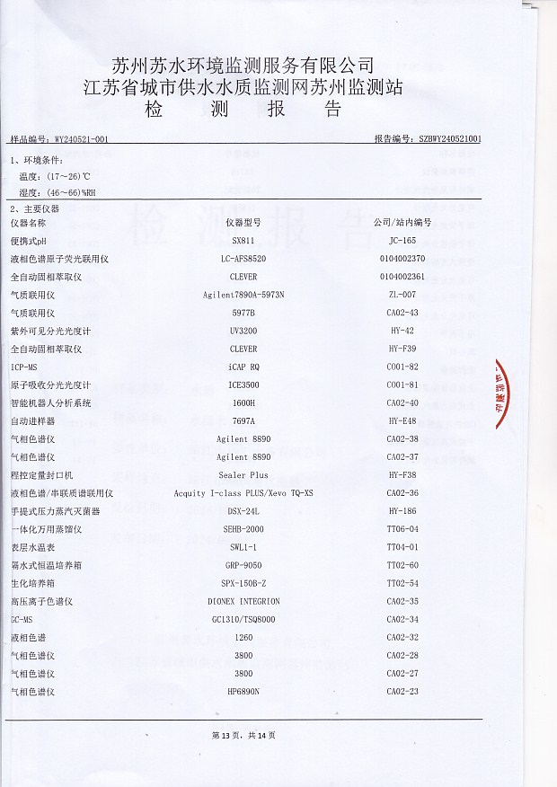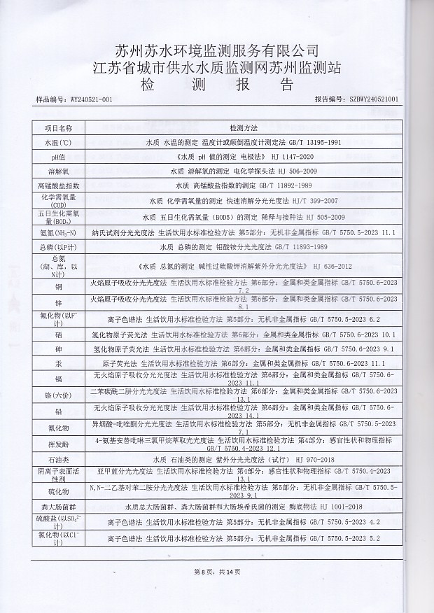 每月管網(wǎng)末梢水全分析