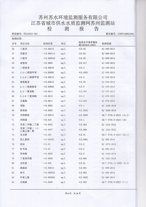 2024年上半年水源水水質(zhì)報告