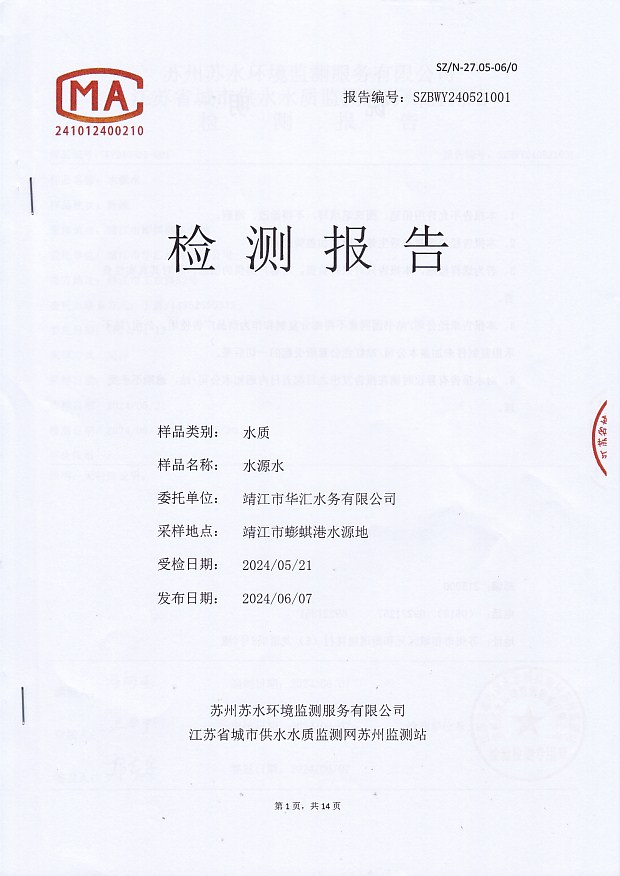 信息來源:華匯水務 ‖ 發(fā)稿作者:水質(zhì)檢驗部 ‖ 發(fā)布時間:2024年6月28日 ‖ 查看2714次 ‖