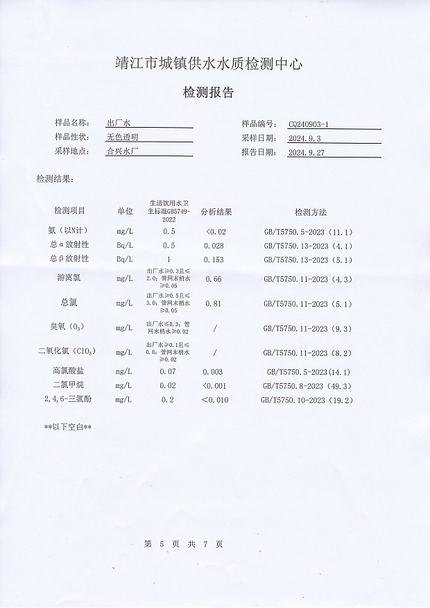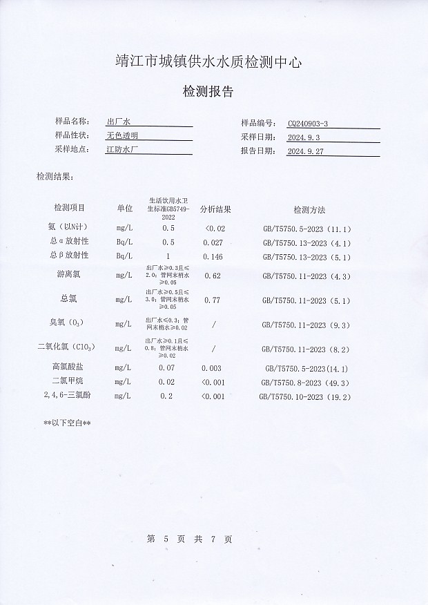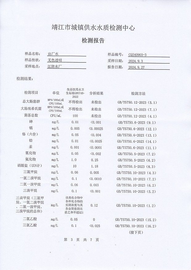 出廠水檢測報告2024.9.3