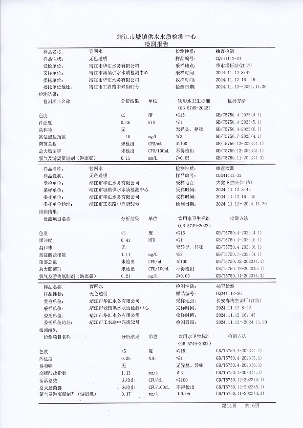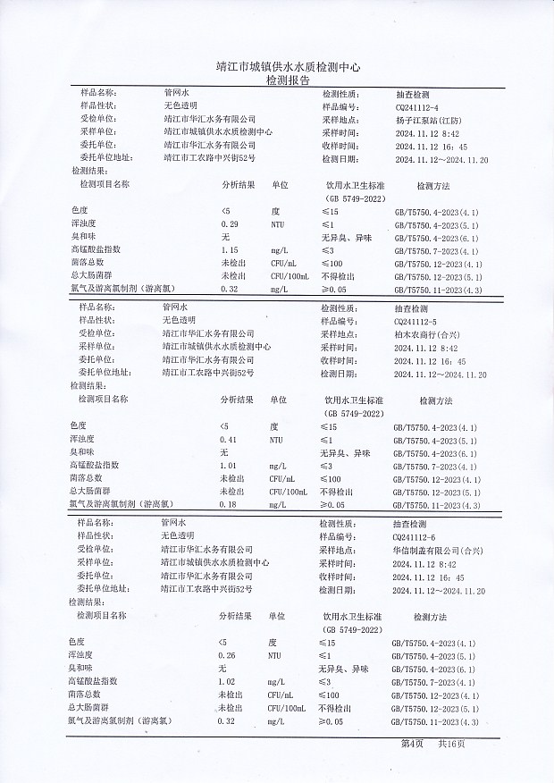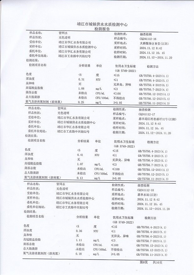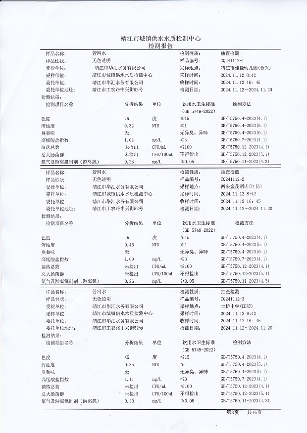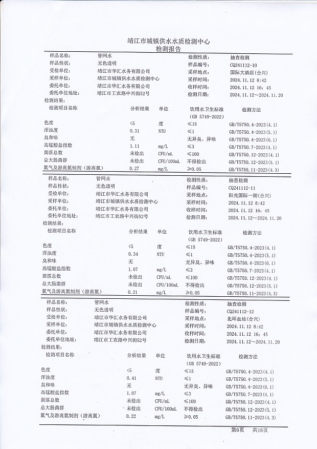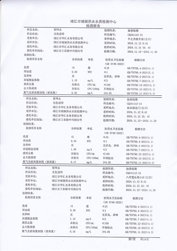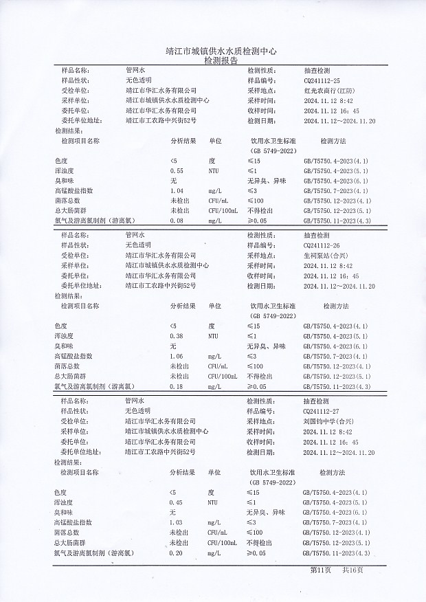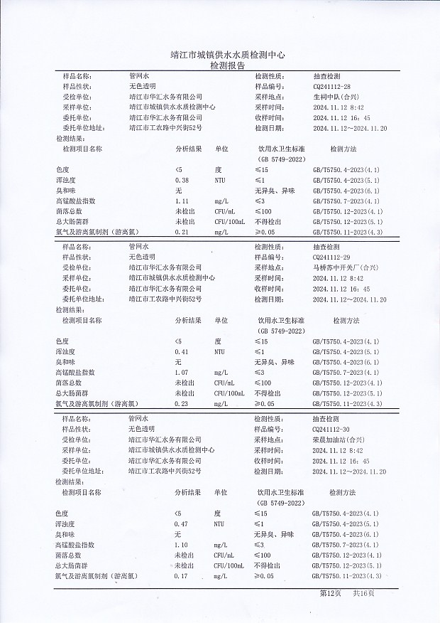 管網(wǎng)水檢測報告2024.11.12