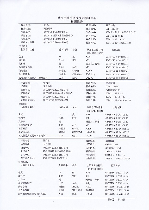 管網(wǎng)水檢測報告2024.11.19