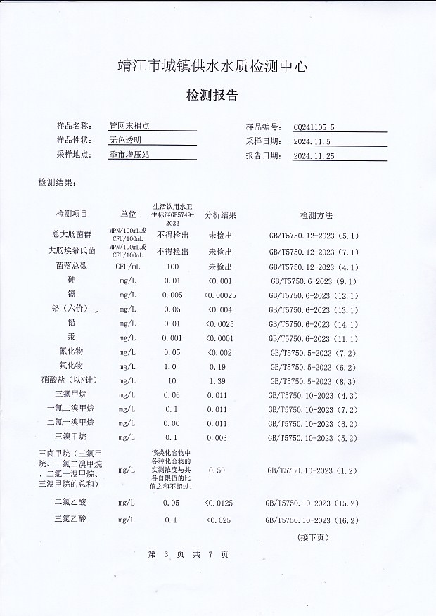 管網(wǎng)末梢水檢測報(bào)告2024.12.3