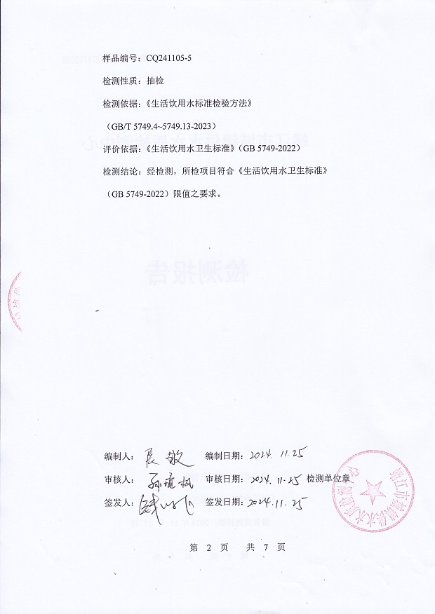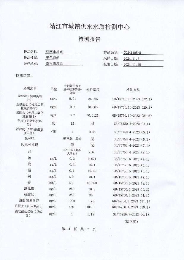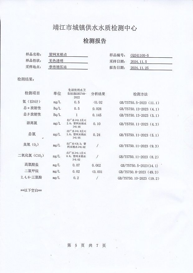 管網(wǎng)末梢水檢測報(bào)告2024.11.5