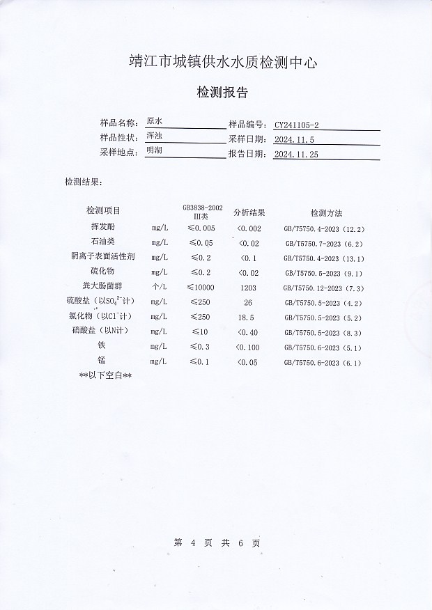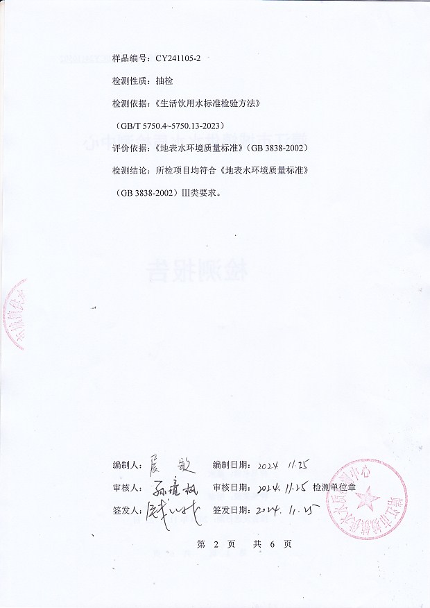 信息來源:華匯水務 ‖ 發(fā)稿作者:水質檢驗部 ‖ 發(fā)布時間:2024年11月25日 ‖ 查看1806次 ‖