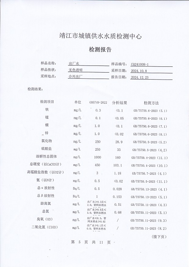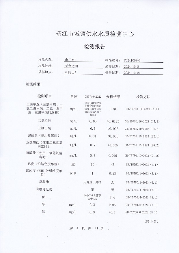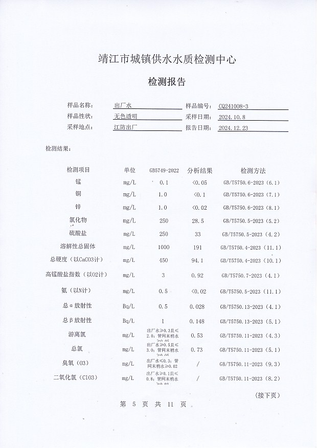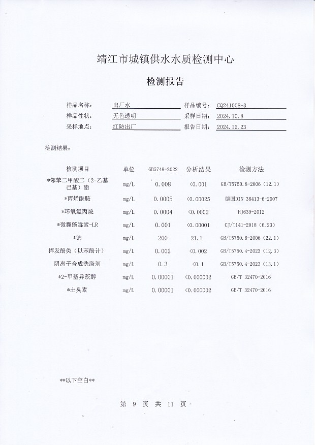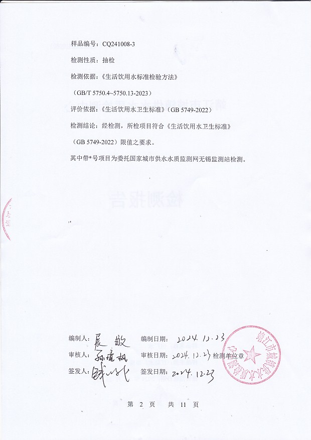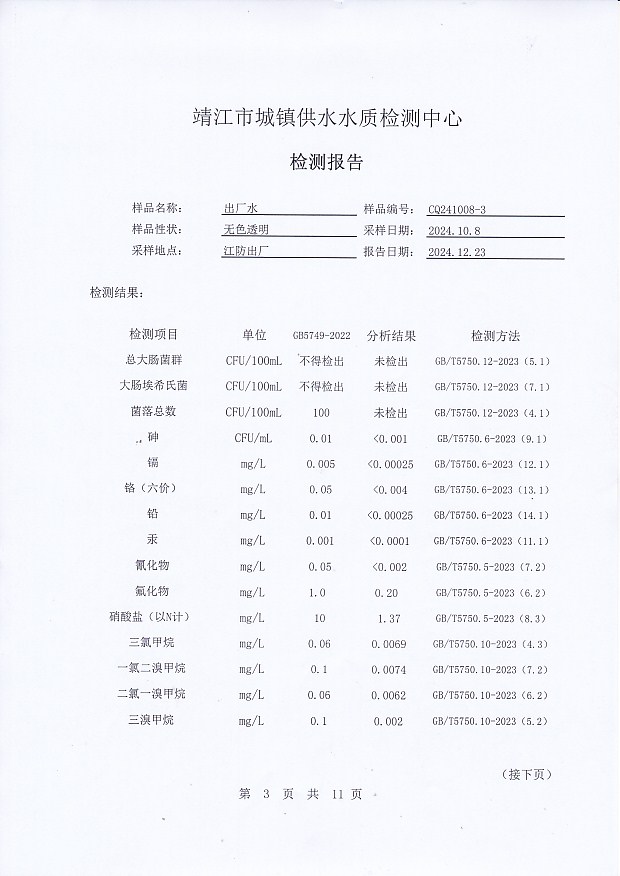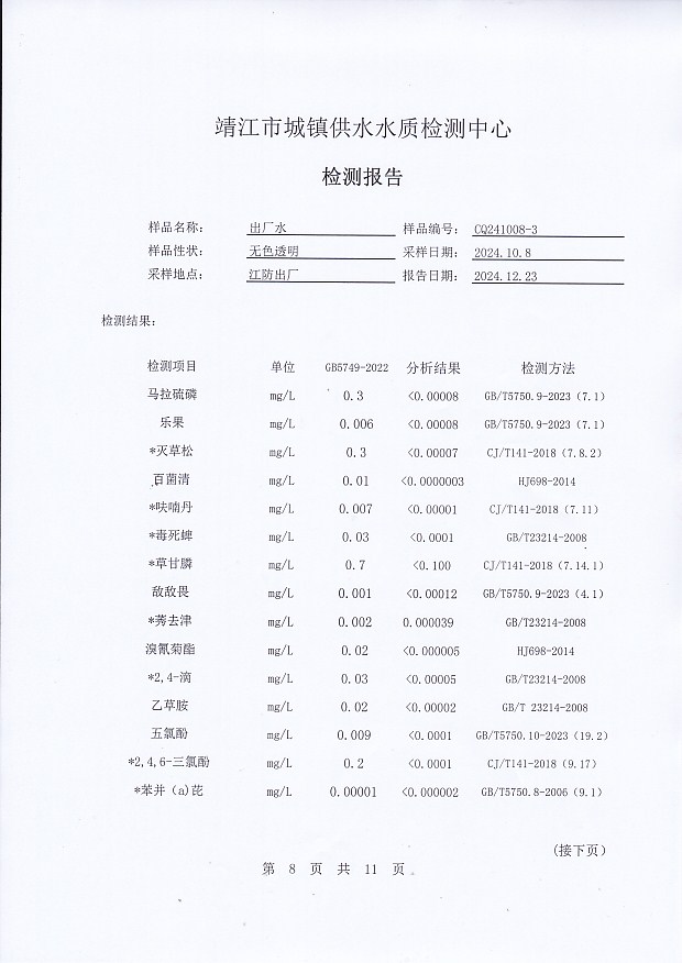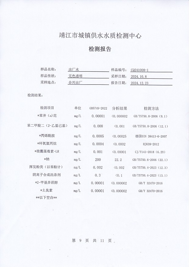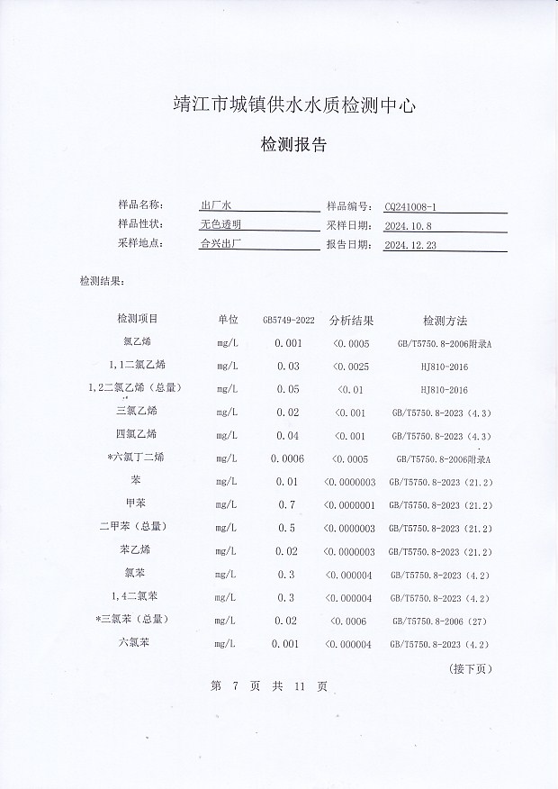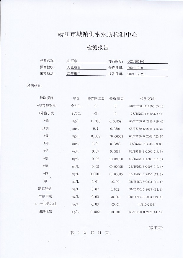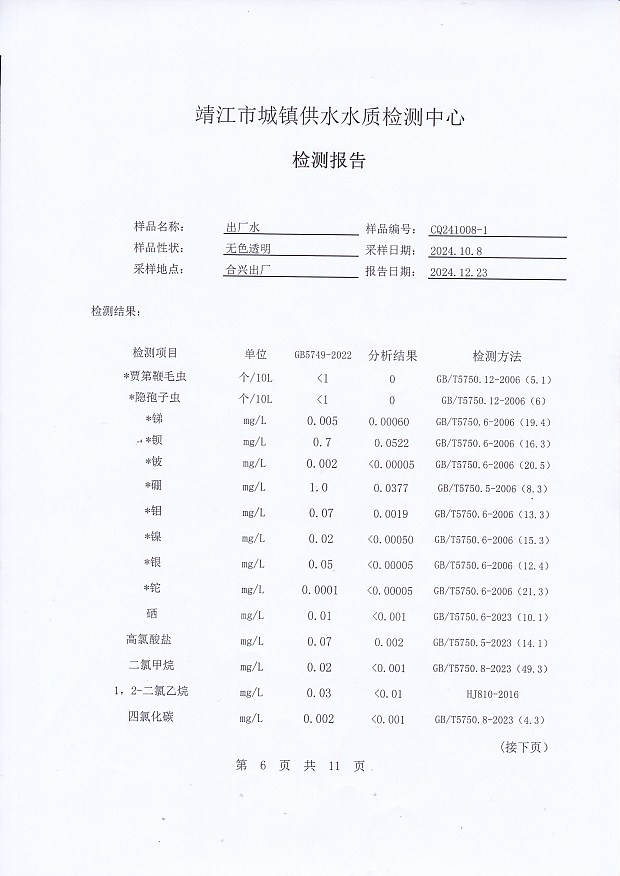 2024年下半年非常規(guī)水質(zhì)檢測報告