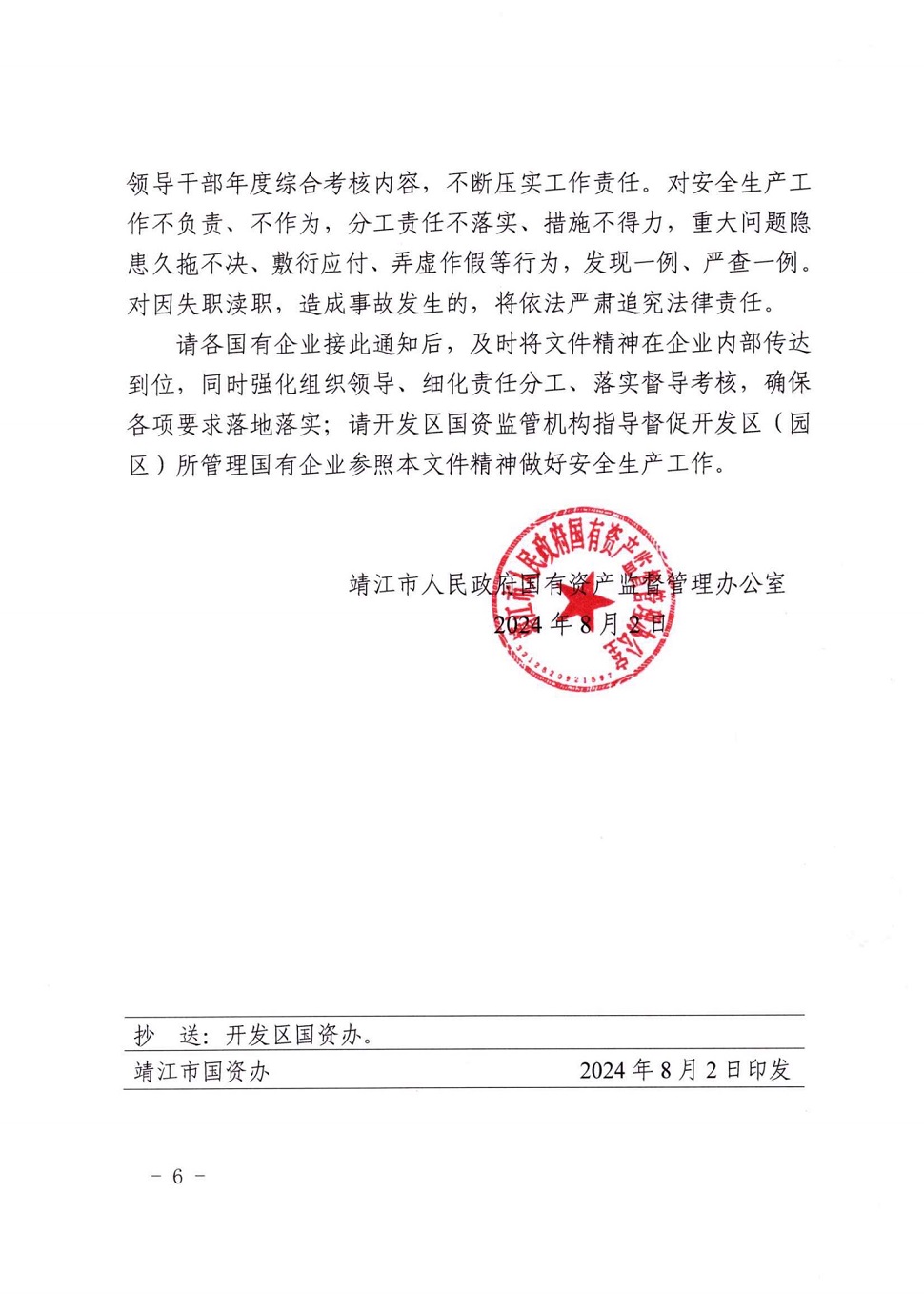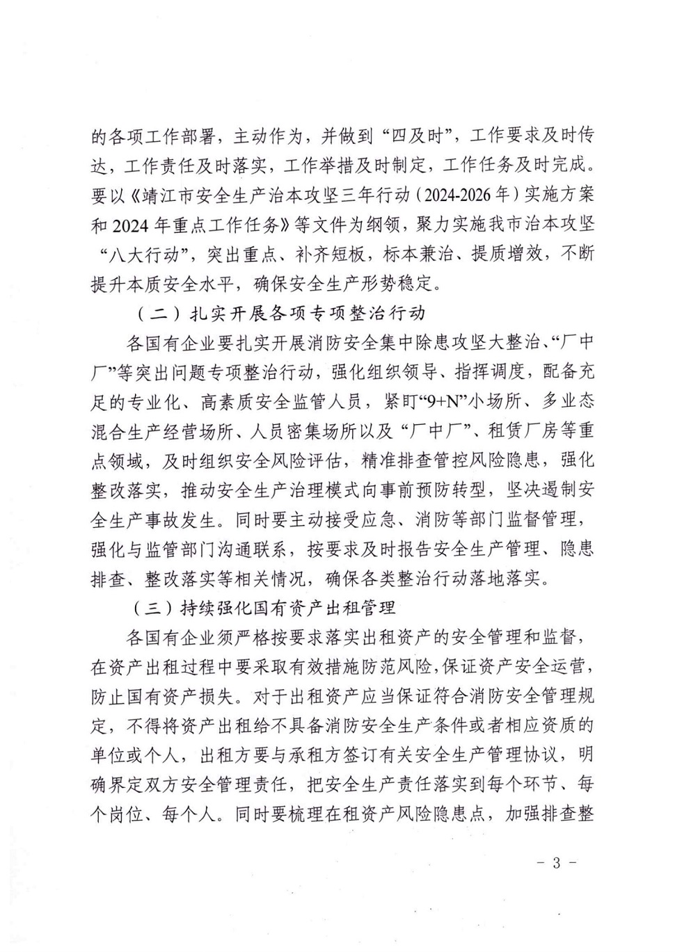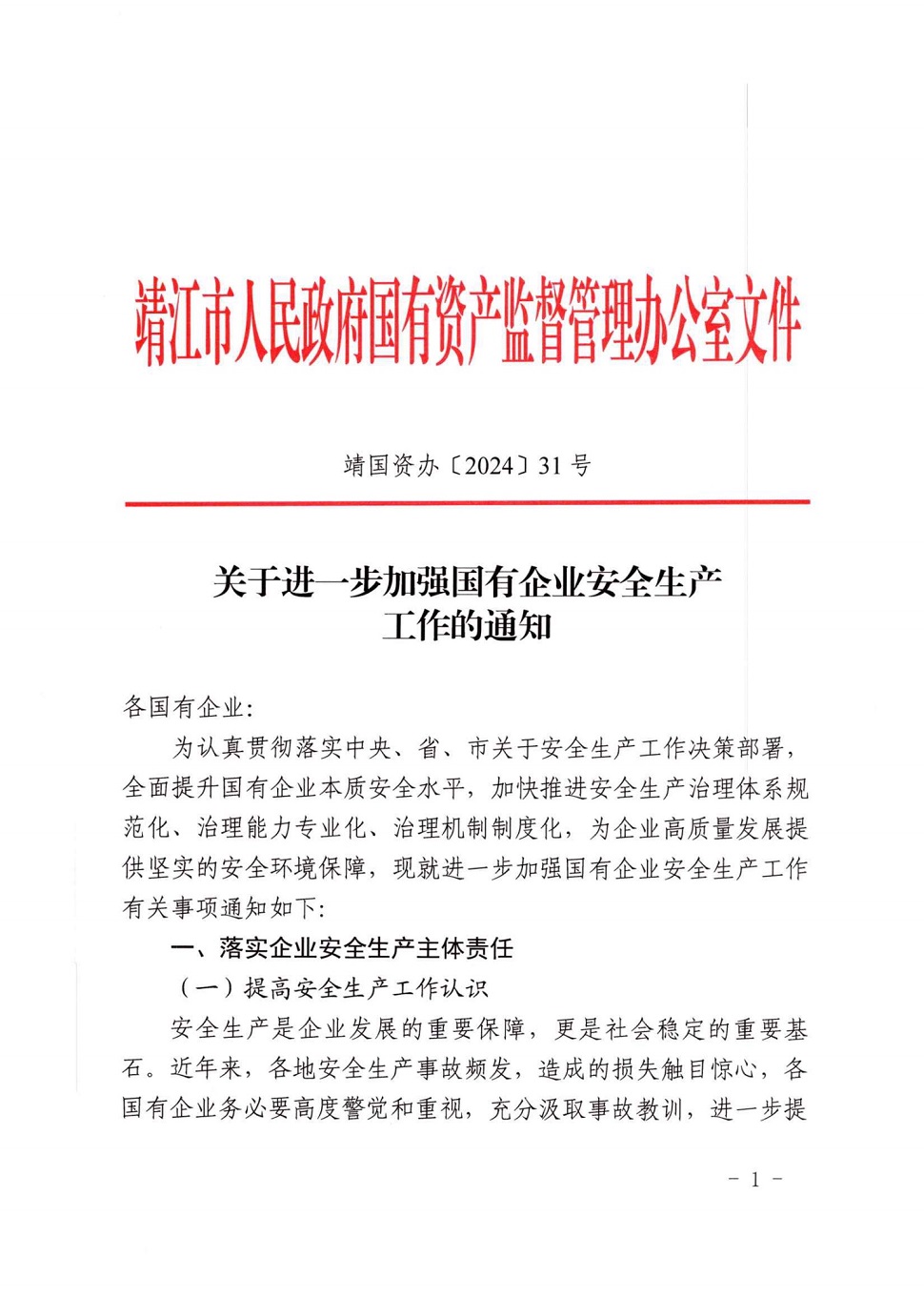 關(guān)于進(jìn)一步加強(qiáng)國有企業(yè)安全生產(chǎn)工作的通知(靖國資辦[2024]31號)