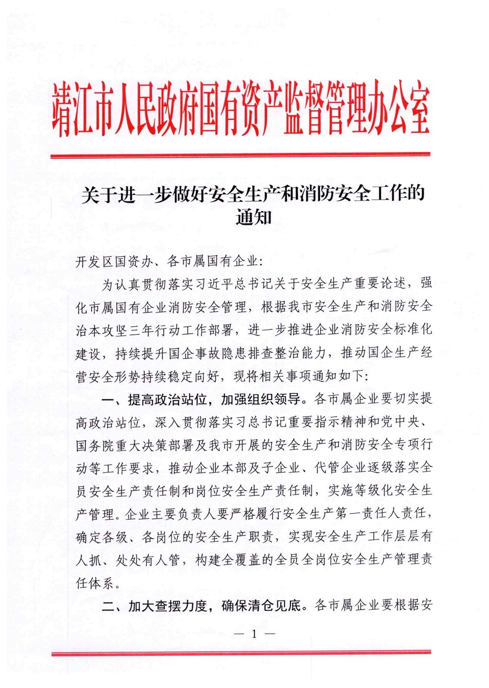 關(guān)于進(jìn)一步加強(qiáng)國有企業(yè)安全生產(chǎn)工作的通知(靖國資辦[2024]31號)