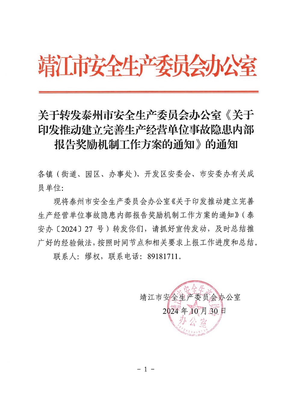靖安委辦 2024 21號關(guān)于轉(zhuǎn)發(fā)《泰州市進(jìn)一步強(qiáng)化安全生產(chǎn)和消防工作舉措清單》的通知