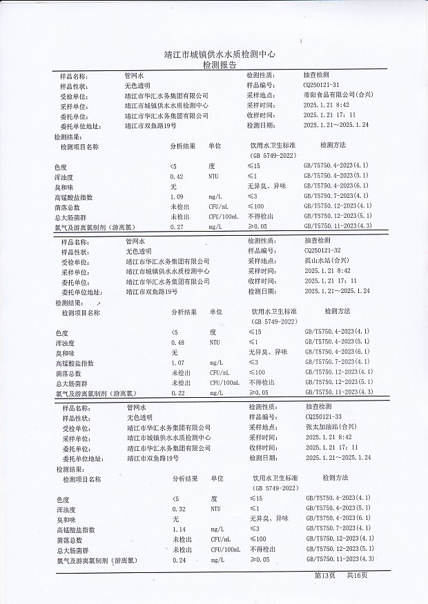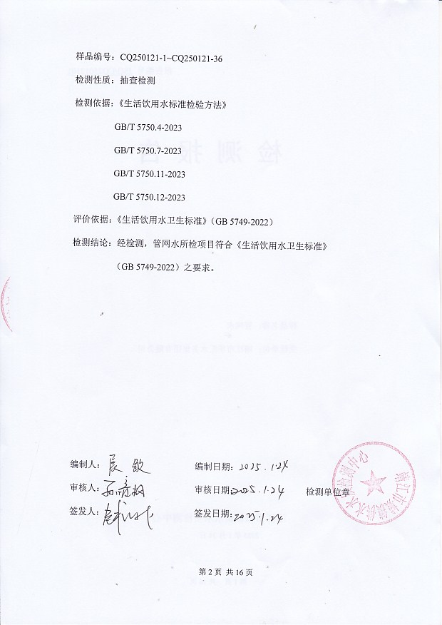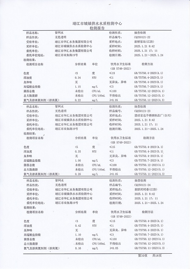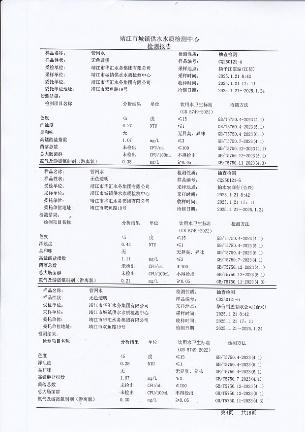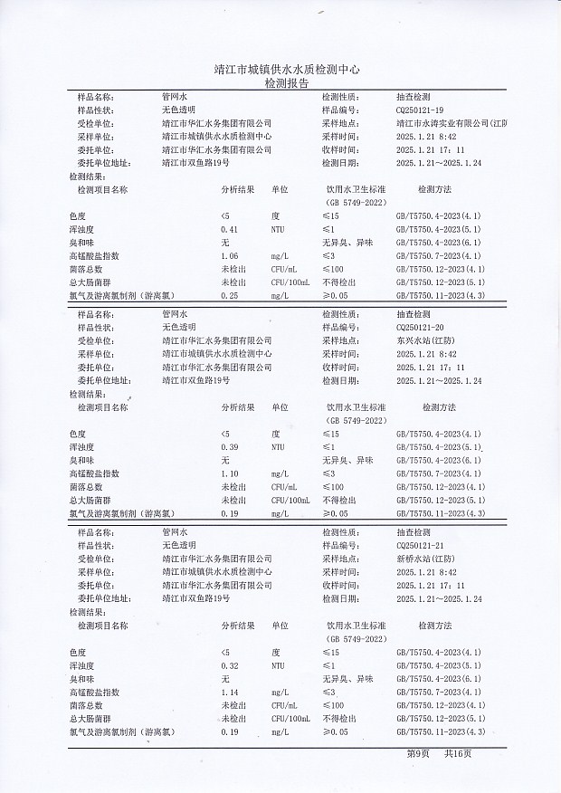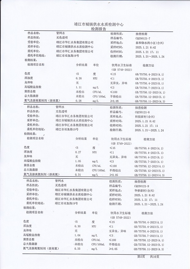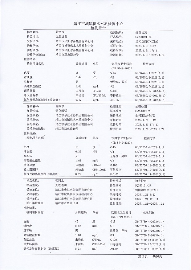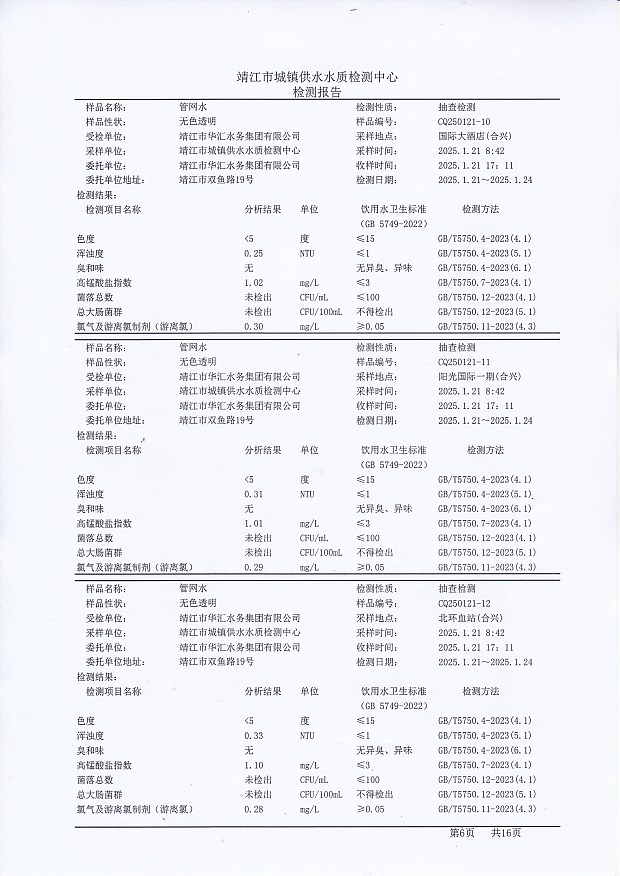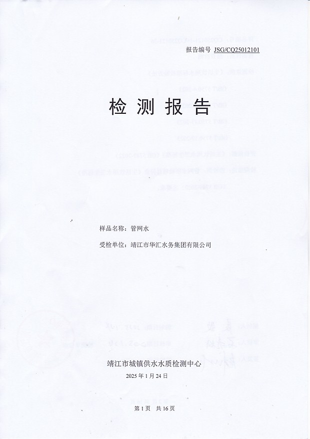 管網(wǎng)水檢測報告2025.1.21
