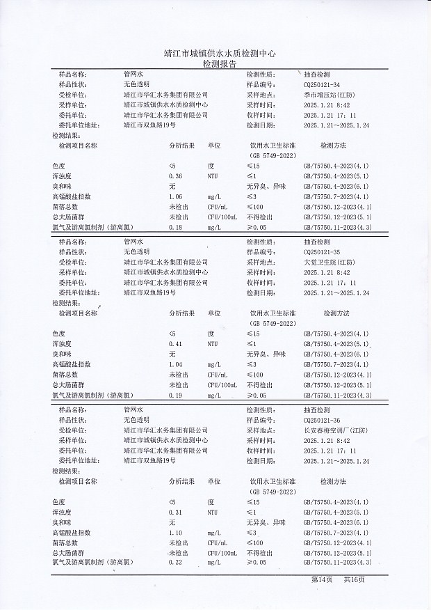 管網(wǎng)水檢測報告2025.1.14