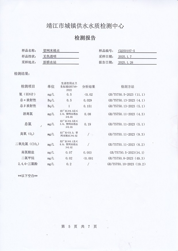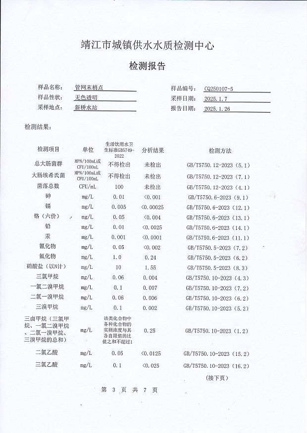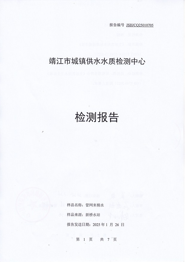管網(wǎng)末梢水檢測(cè)報(bào)告2025.1.7