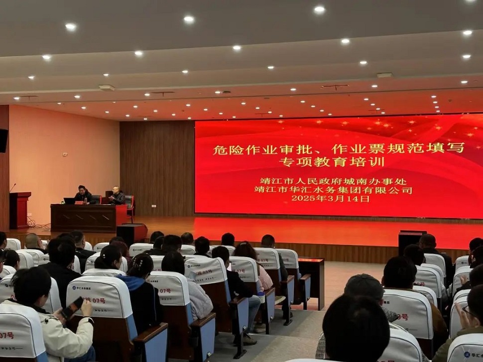 為深入貫徹安全生產(chǎn)法律法規(guī),提升危險(xiǎn)作業(yè)審批及票證管理規(guī)范化水平,3月14日下午,靖江市華匯水務(wù)集團(tuán)有限公司開展“危險(xiǎn)作業(yè)審批及作業(yè)票規(guī)范填寫專項(xiàng)教育培訓(xùn)”。本次培訓(xùn)由城南園區(qū)安監(jiān)局協(xié)調(diào)組織,特邀江蘇省安全生產(chǎn)專家?guī)斐蓡T張文宏老師授課,公司領(lǐng)導(dǎo)班子、各部門負(fù)責(zé)人、專兼職安全員及外委單位代表共100余人參加,培訓(xùn)由監(jiān)事會(huì)主席王鵬主持。