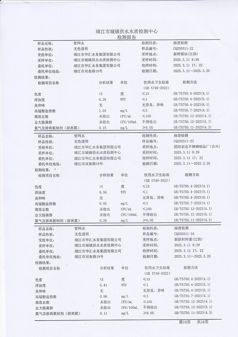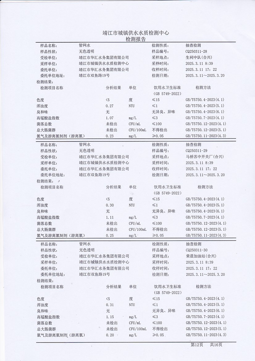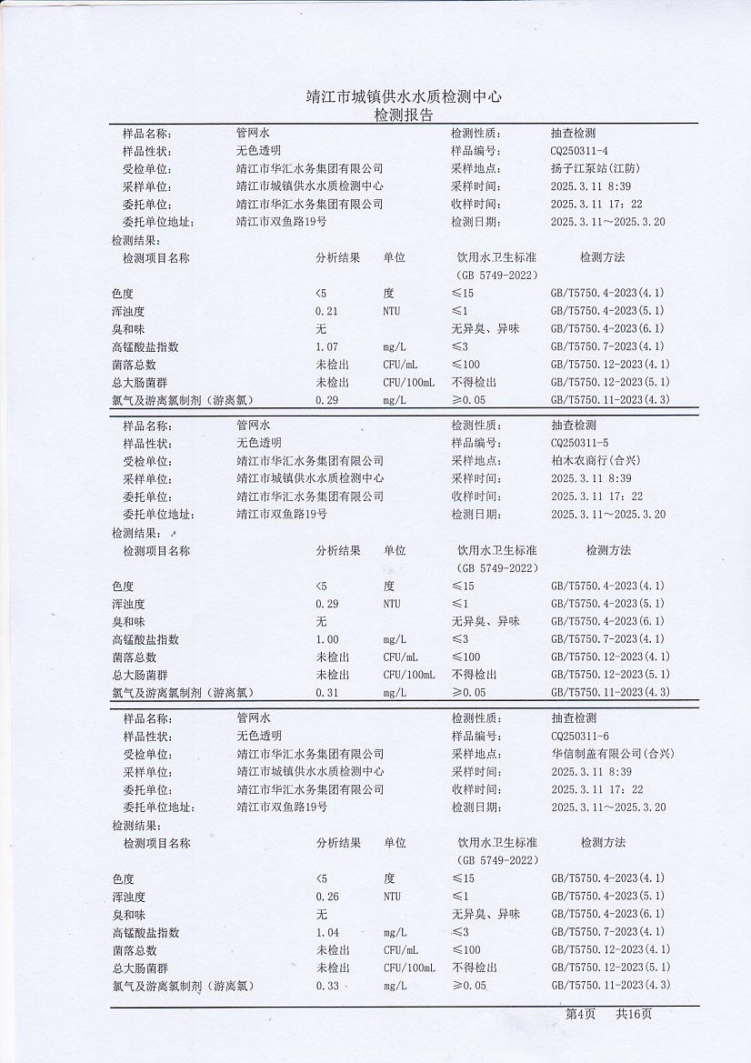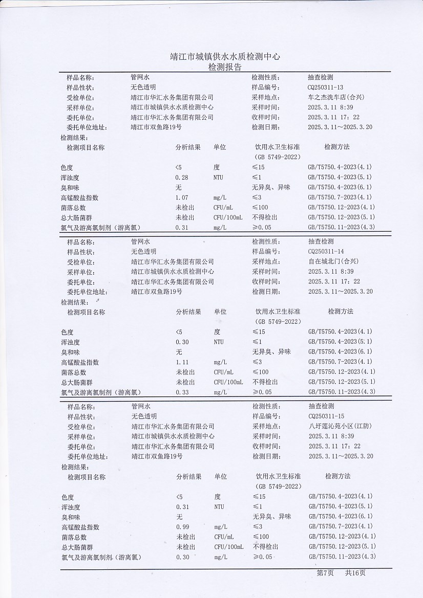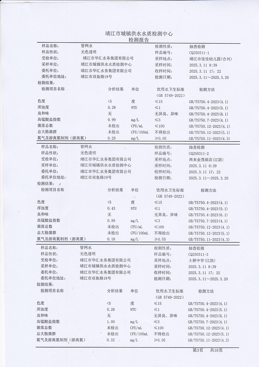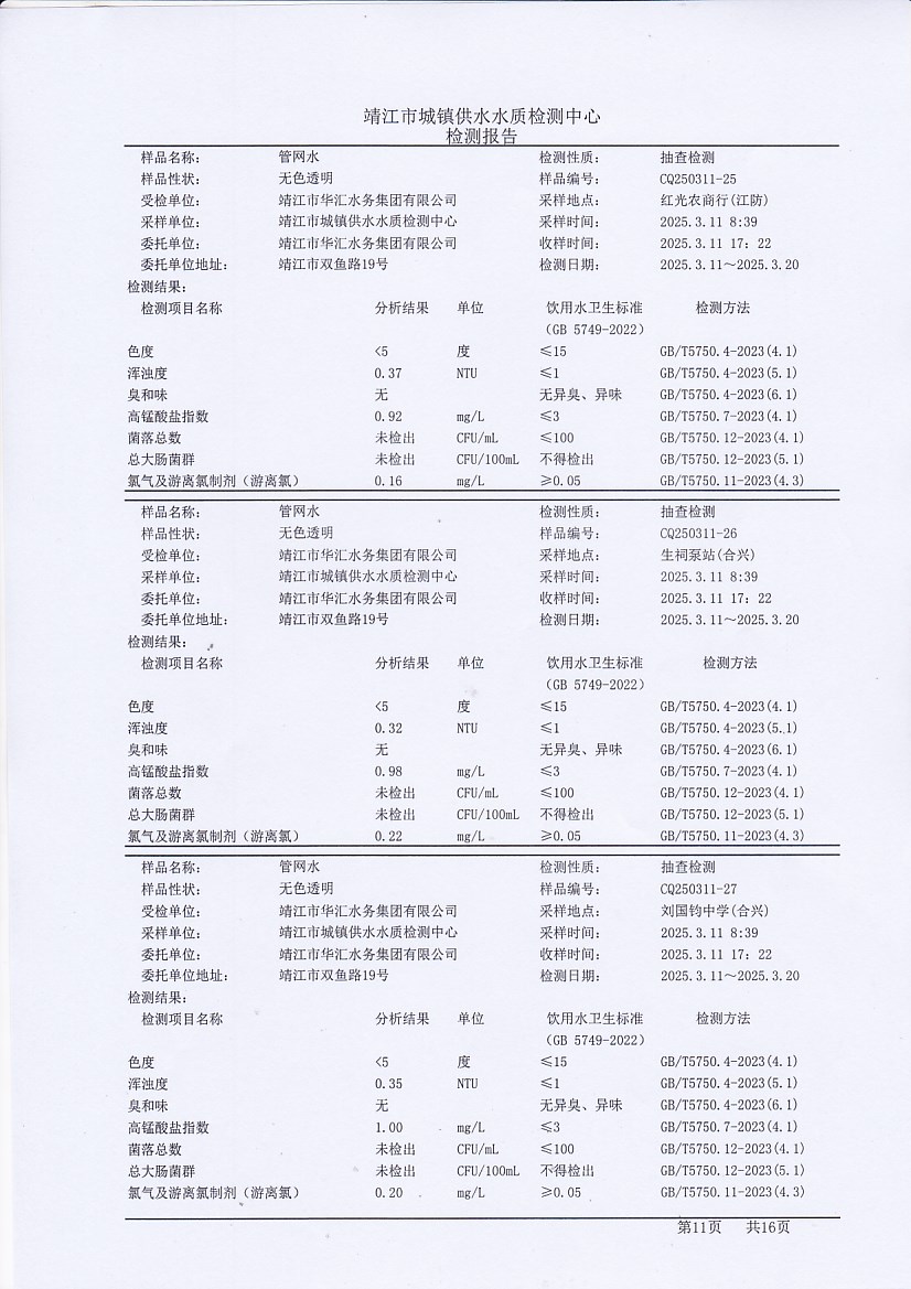 管網(wǎng)水檢測(cè)報(bào)告2025.3.11
