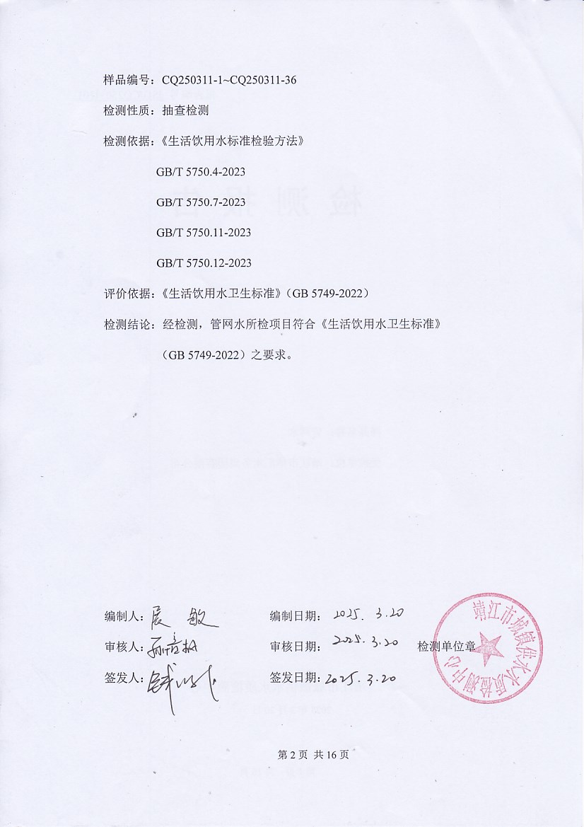 管網(wǎng)水檢測(cè)報(bào)告2025.2.25