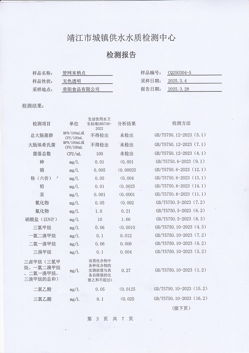 管網(wǎng)末梢水檢測報(bào)告2025.3.4