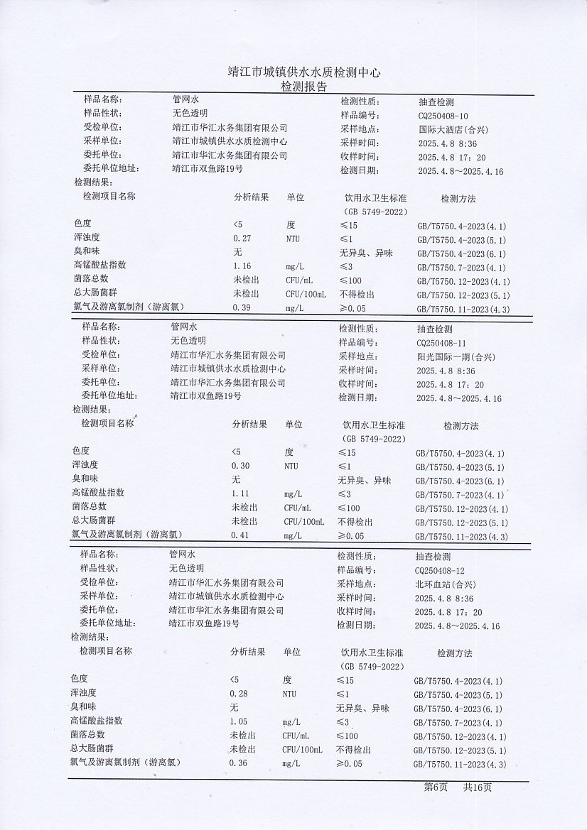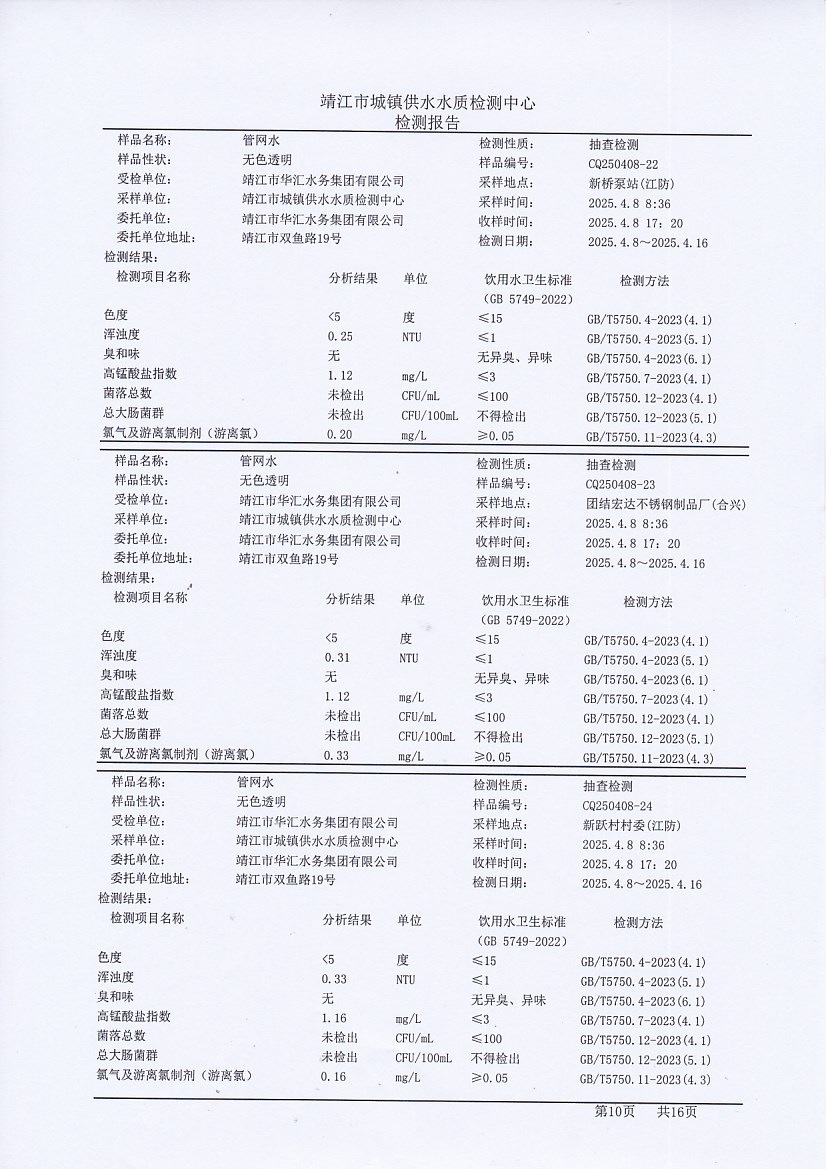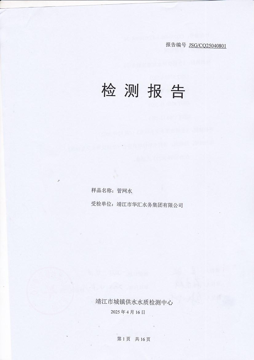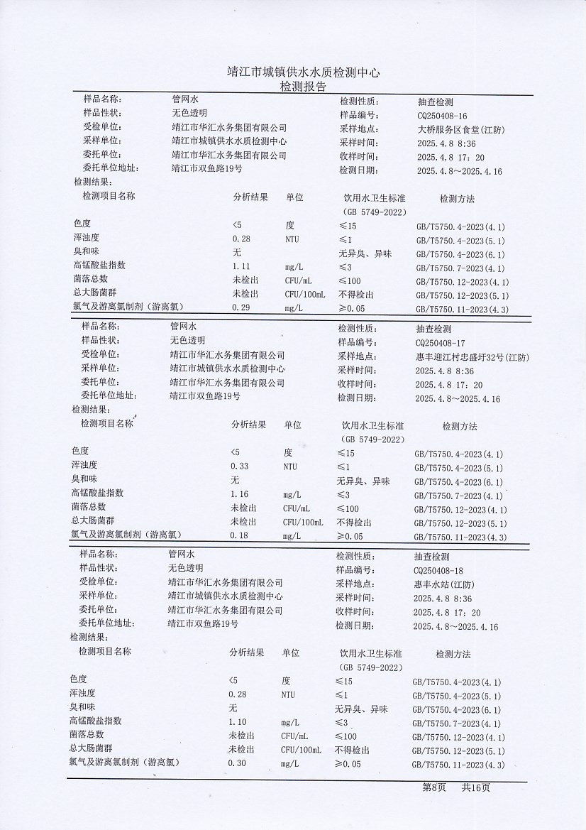 管網(wǎng)水檢測報(bào)告2025.4.8